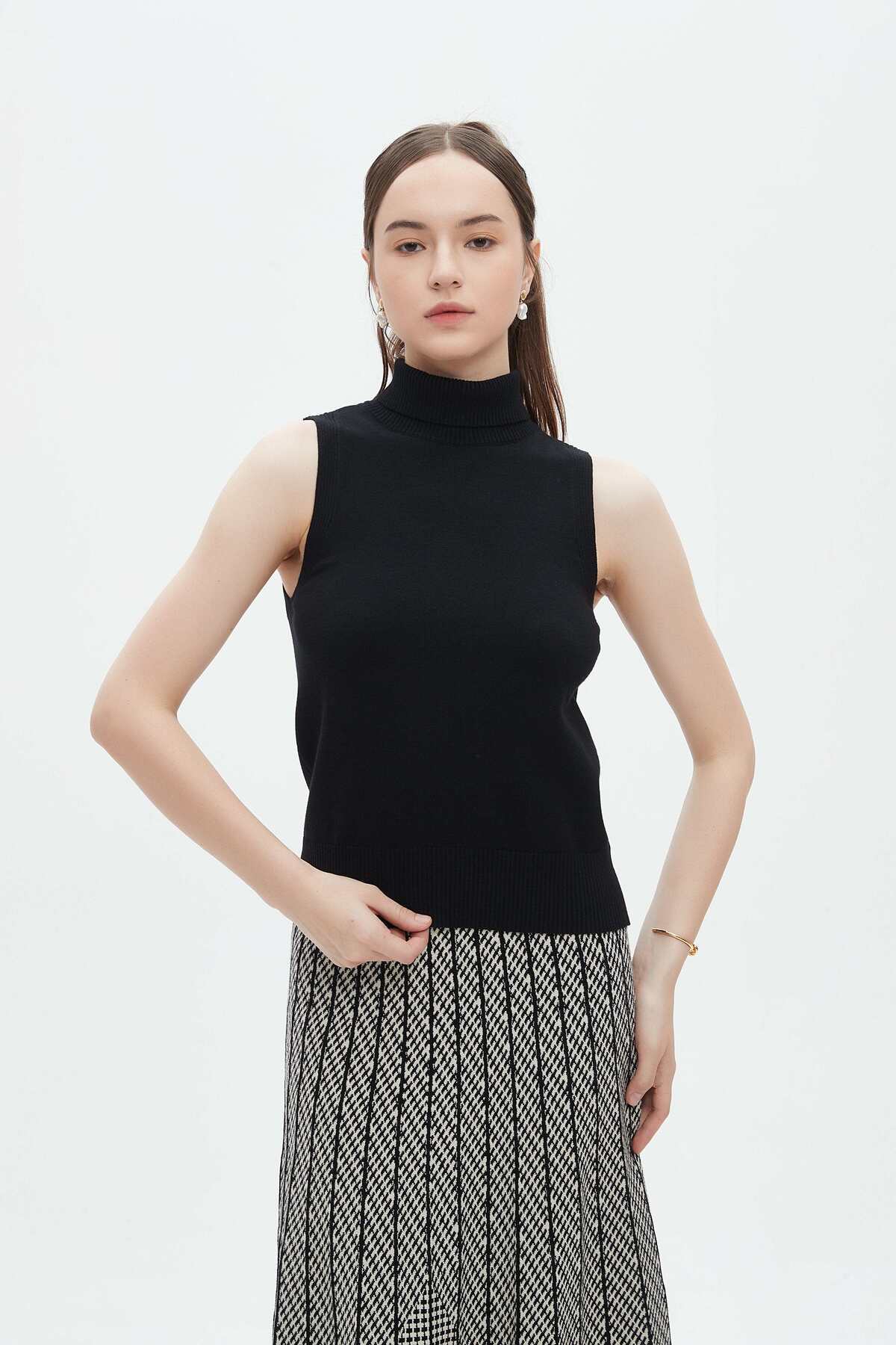 ميزات بلوزة سادة برقبة عالية من mica