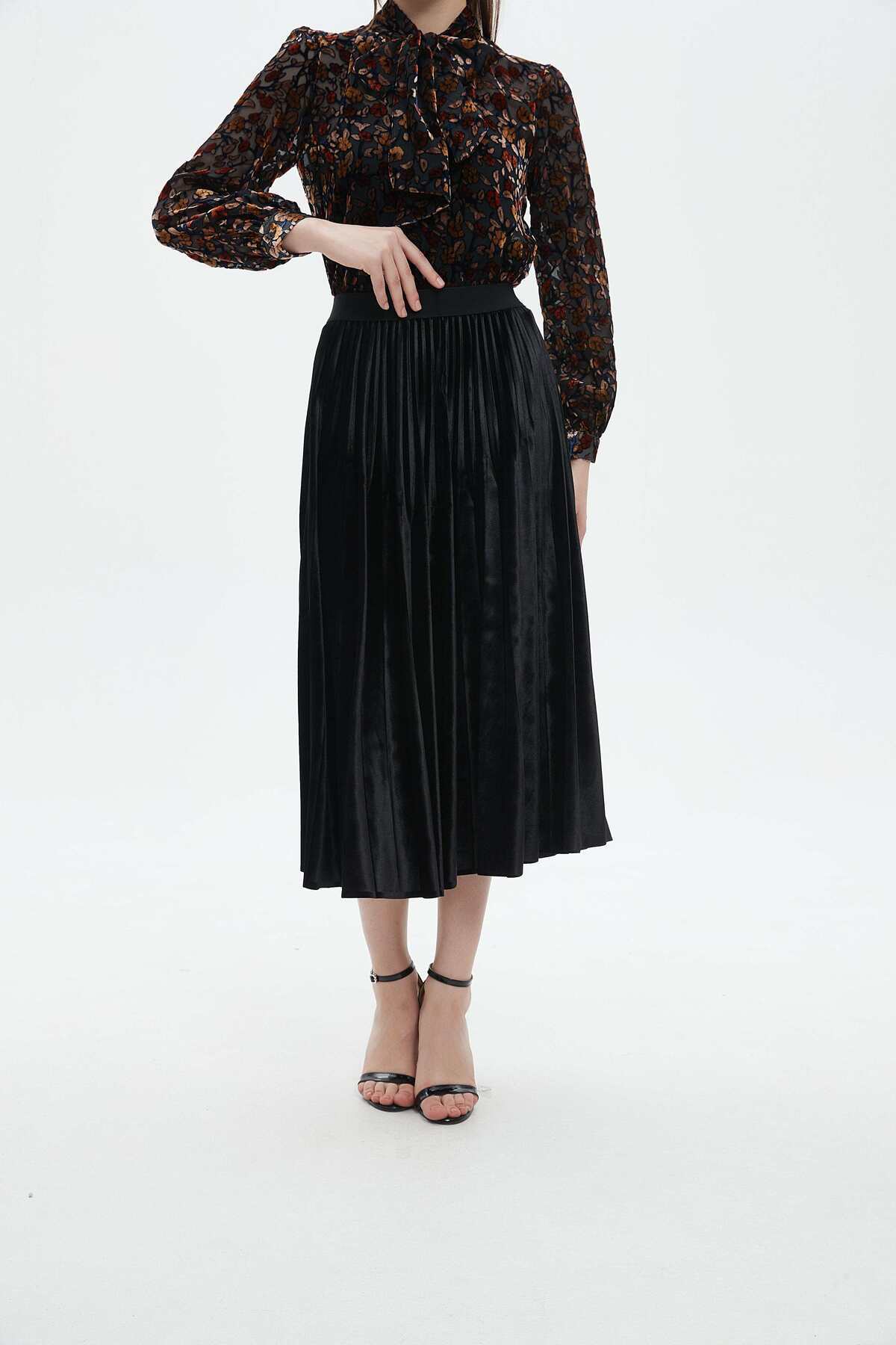 ميزات تنورة ميدي سادة مطوية من mica