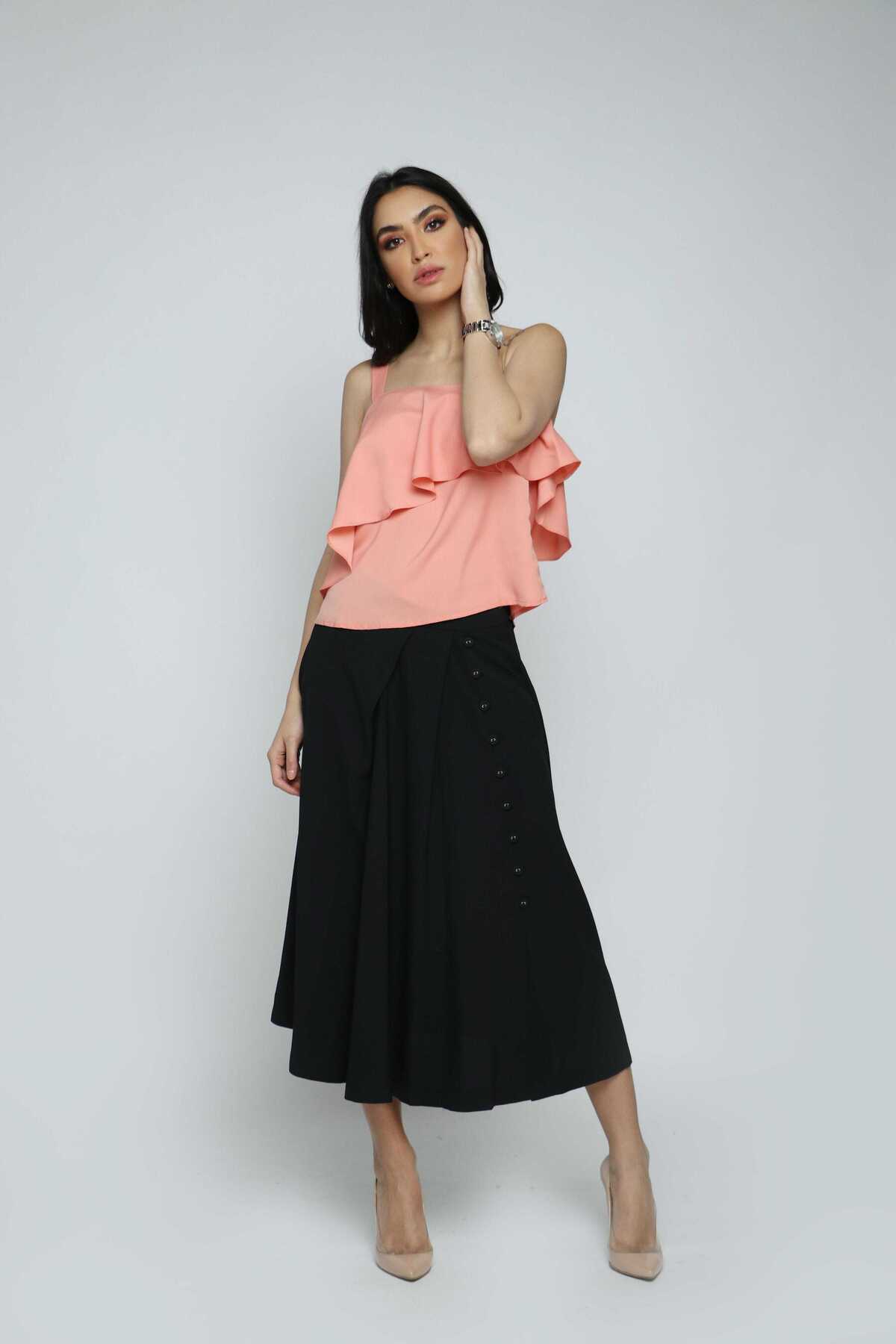 ميزات بلوزة مكشكشة ذات أشرطة من mica