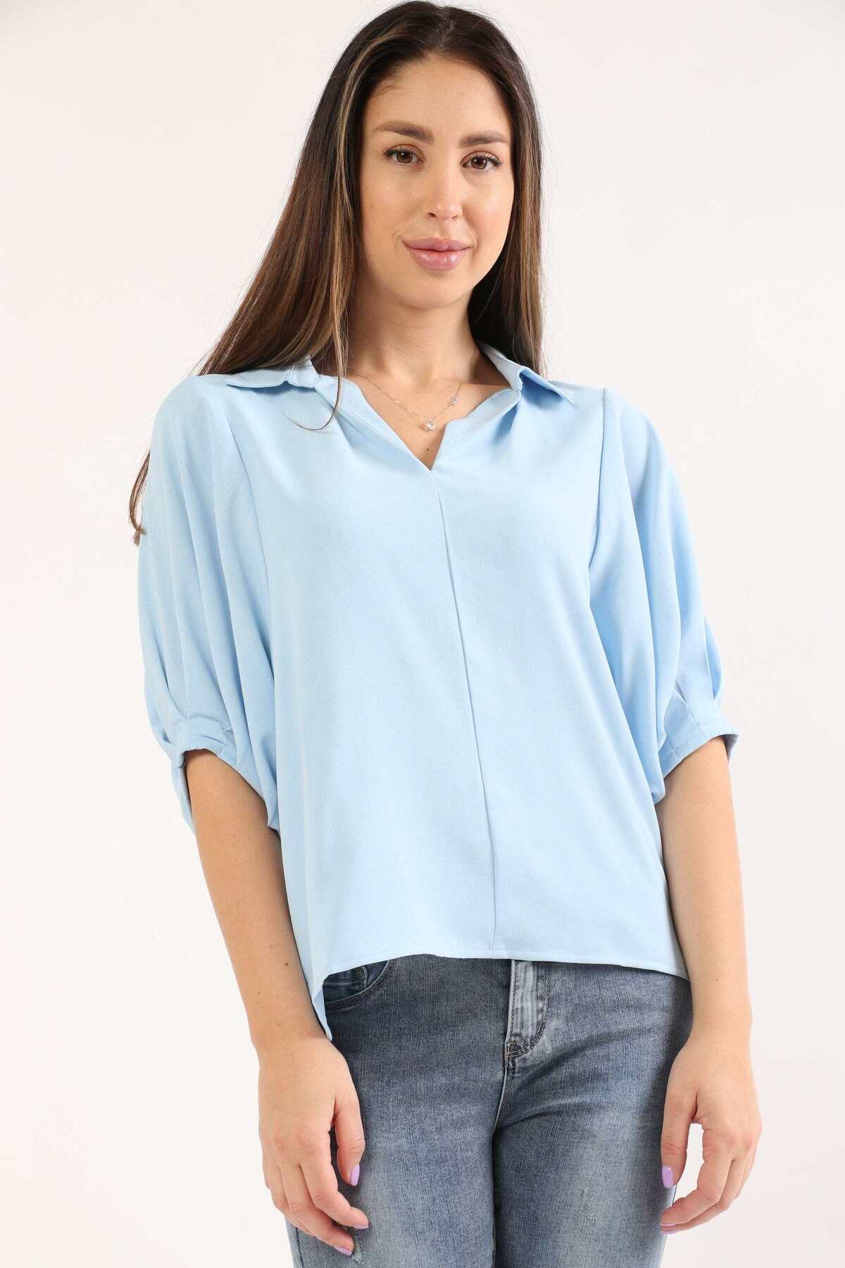 ميزات بلوزة سادة بأكمام 3/4 من mica