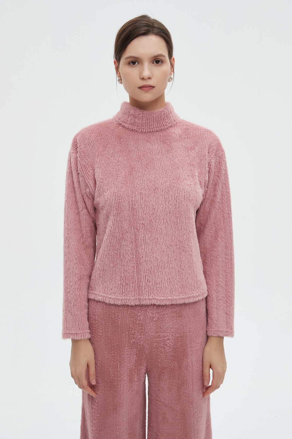 ميزات بلوزة سادة برقبة عالية وأكمام طويلة من mica