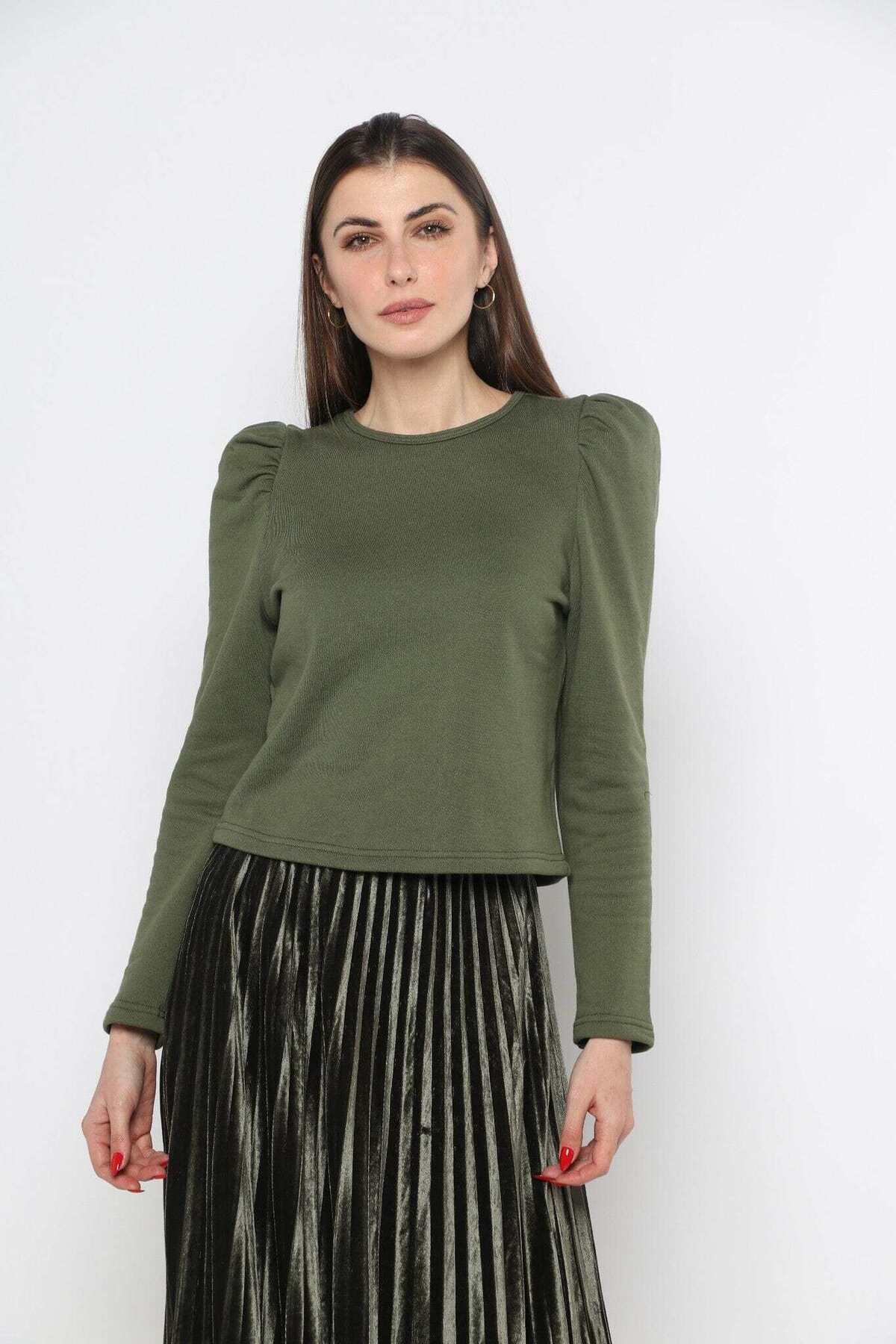 ميزات بلوزة سادة برقبة عالية وأكمام طويلة من mica