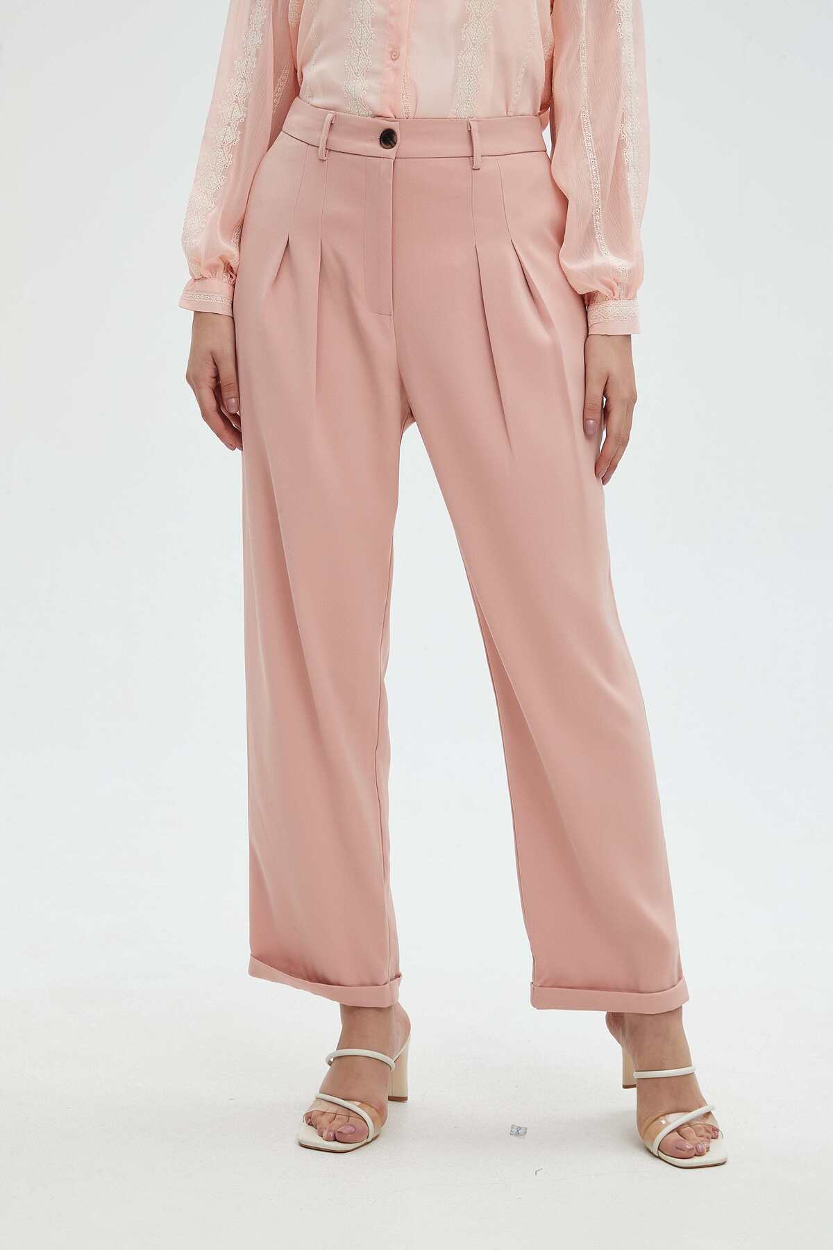 ميزات بنطلون سادة عالي الخصر مع جيوب من mica