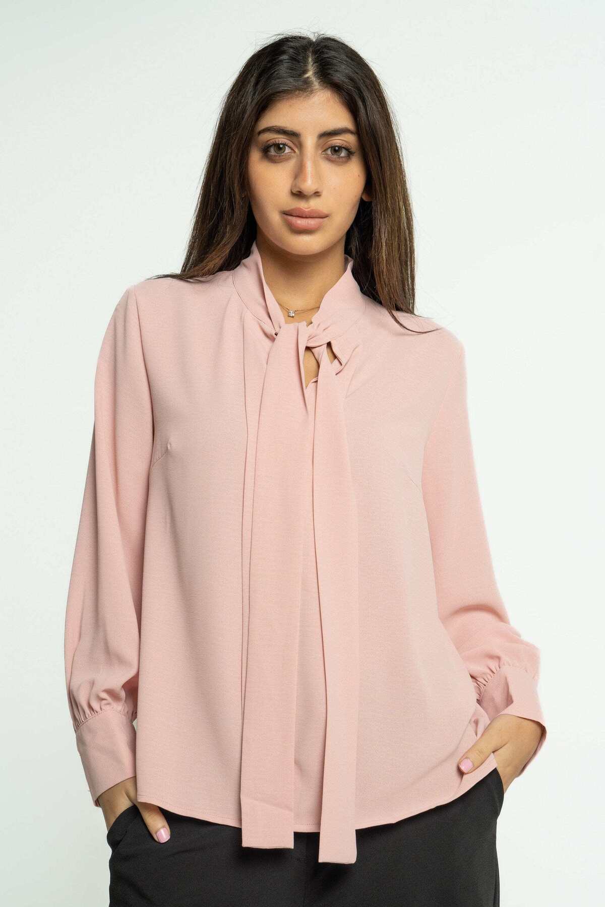 ميزات بلوزة سادة بأكمام طويلة وربطة عنق من mica