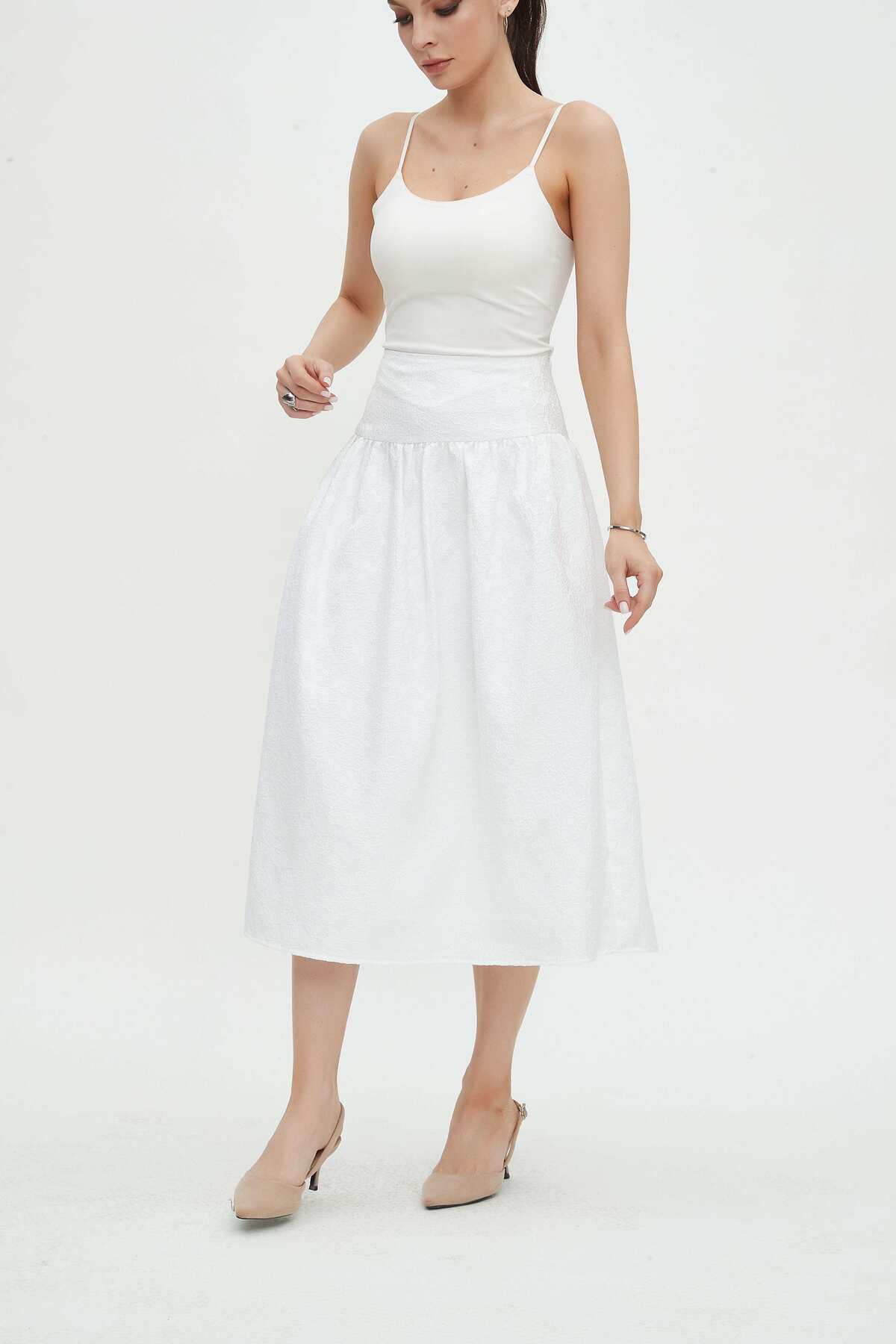 ميزات تنورة ميدي سادة مع كشكشة من mica