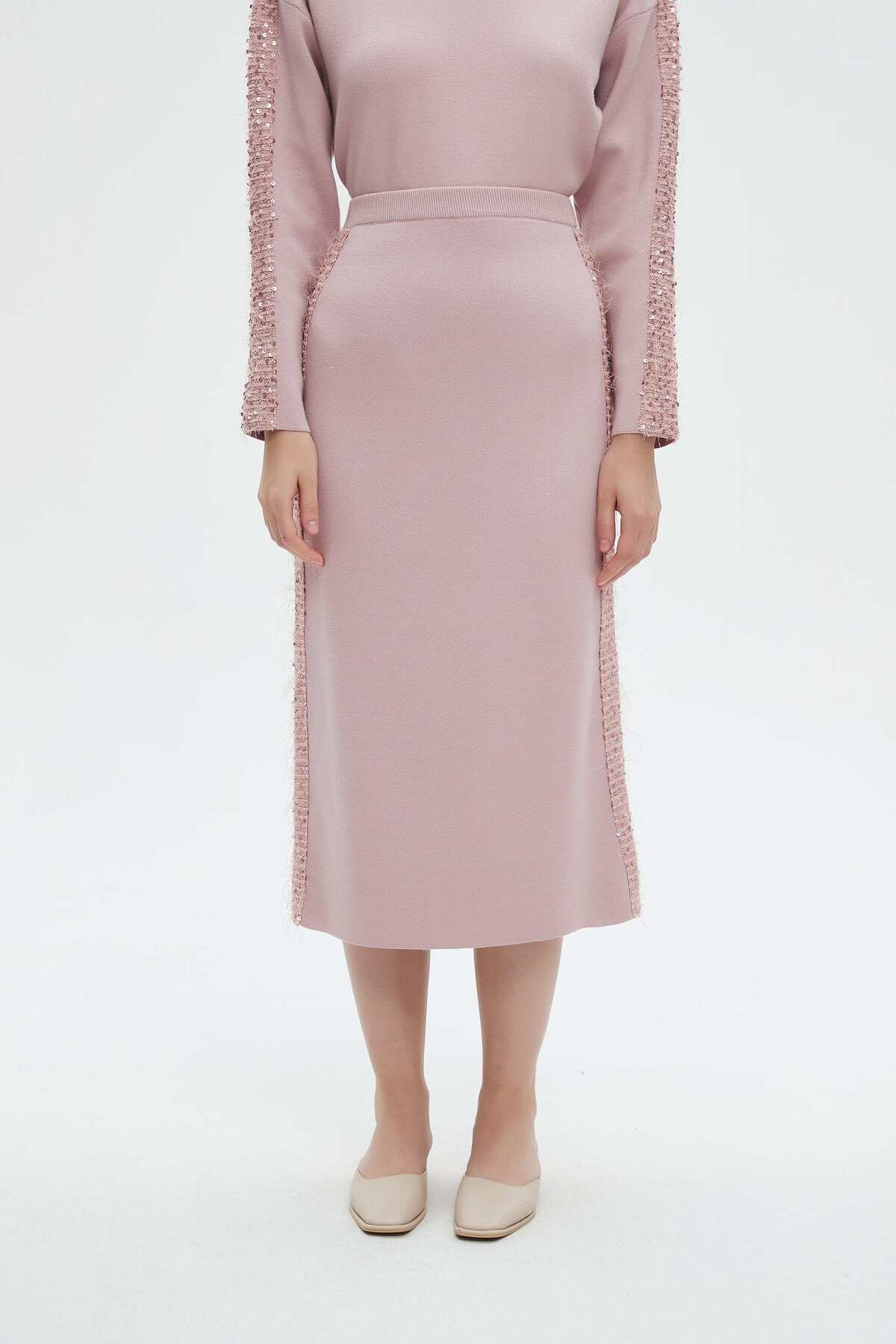 ميزات تنورة ميدي سادة مع تطريز جانبي من mica