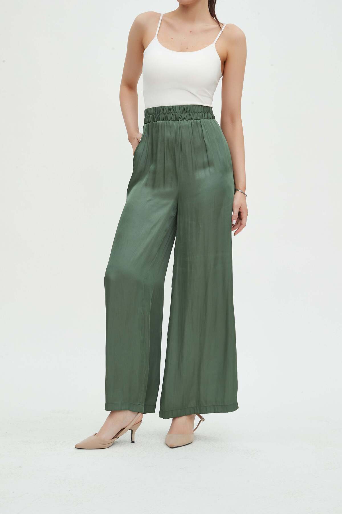 ميزات بنطلون مريح سادة من mica