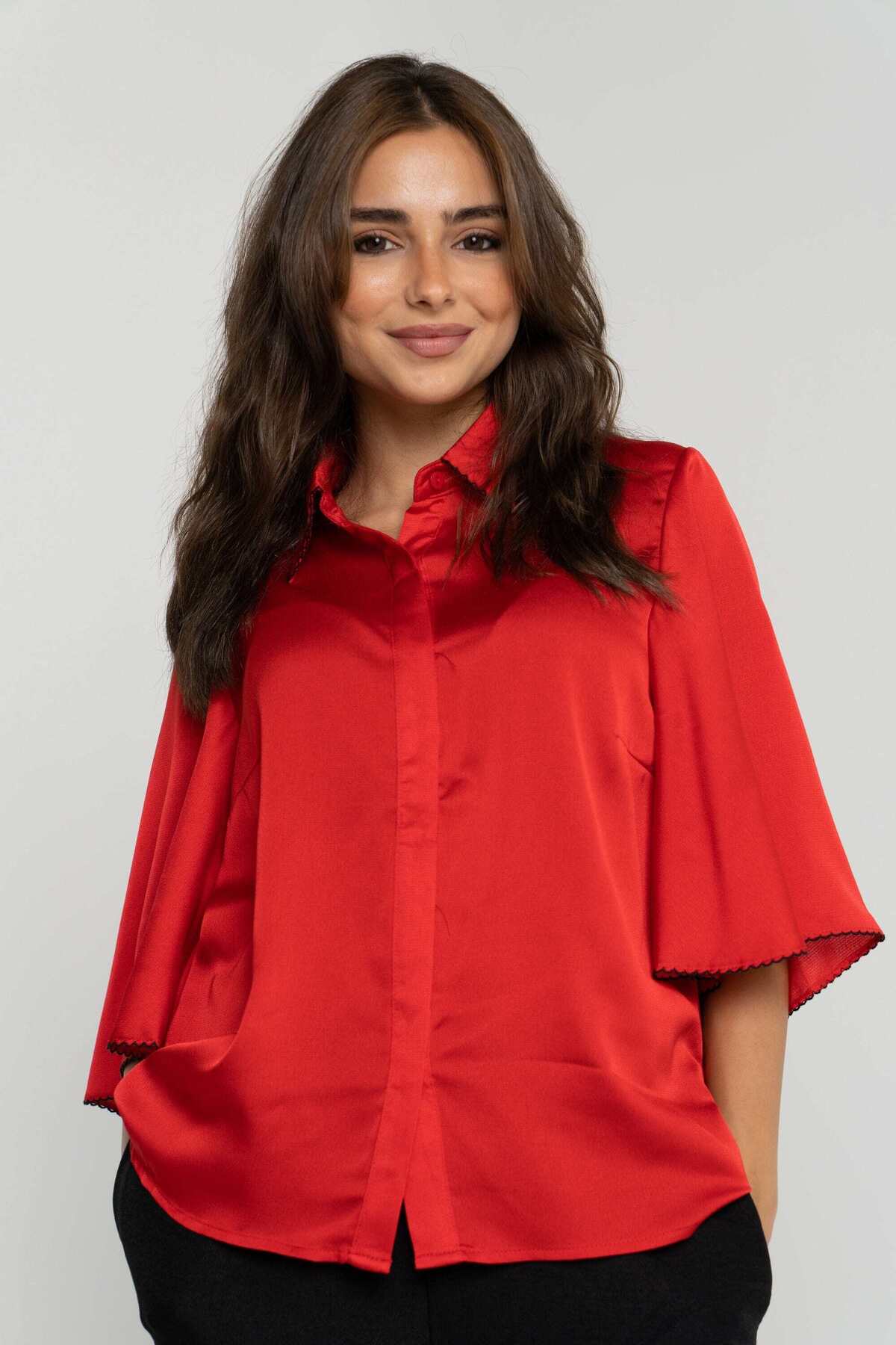 ميزات قميص سادة بأكمام قصيرة من mica