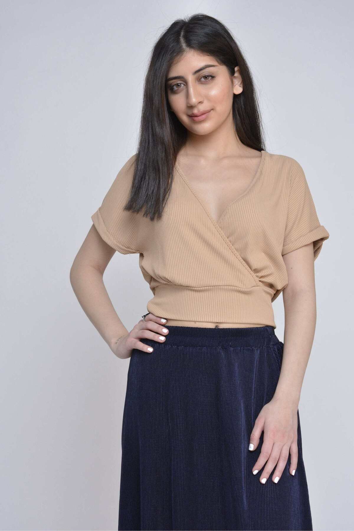ميزات بلوزة سادة بأكمام قصيرة من mica