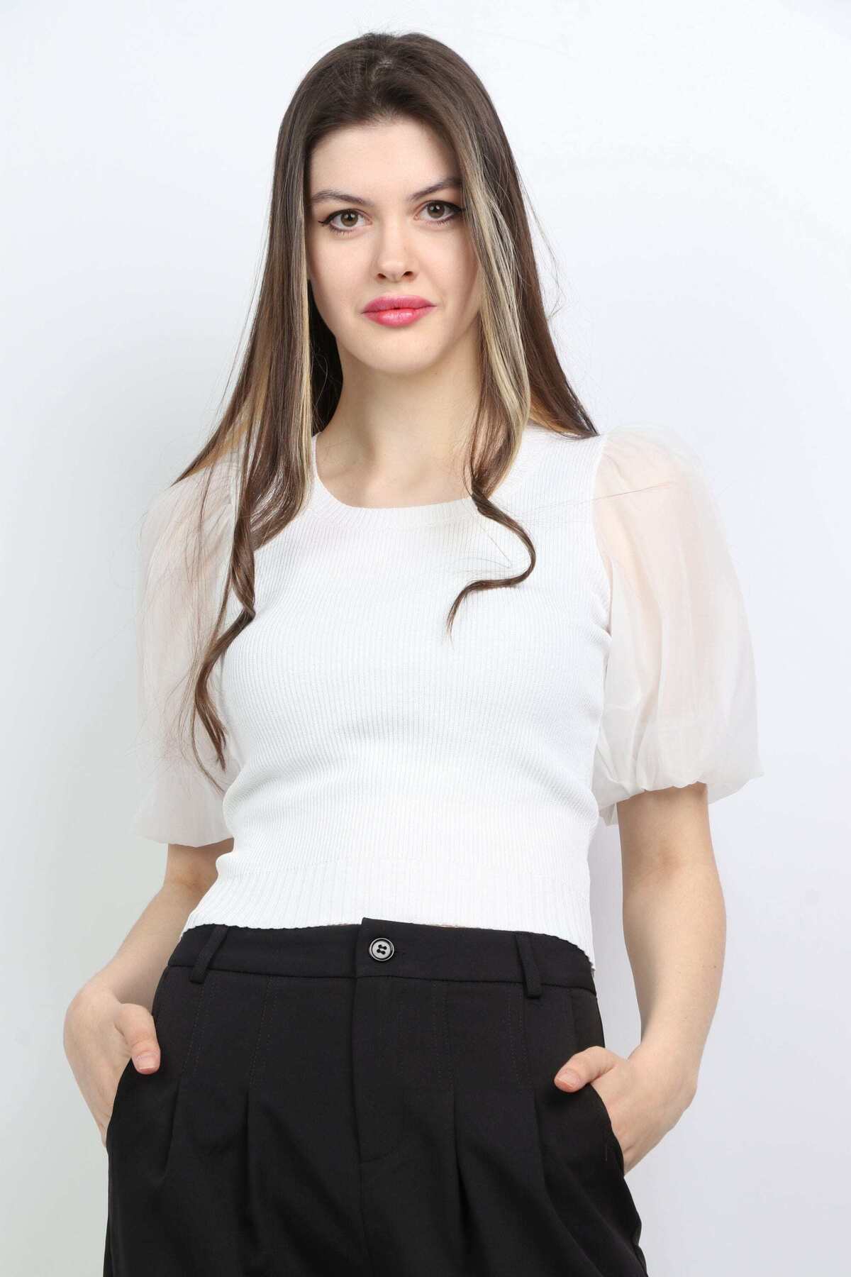ميزات بلوزة سادة برقبة مربعة من mica