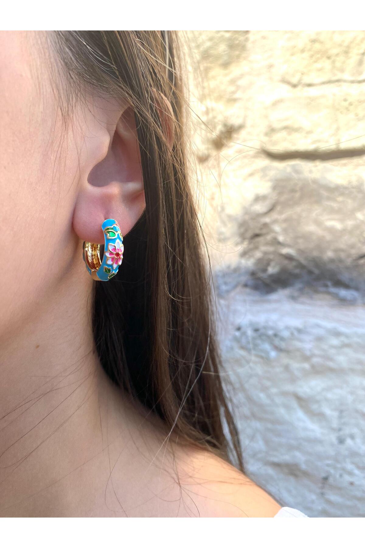 milayk أقراط زرقاء منقوشة عرقية