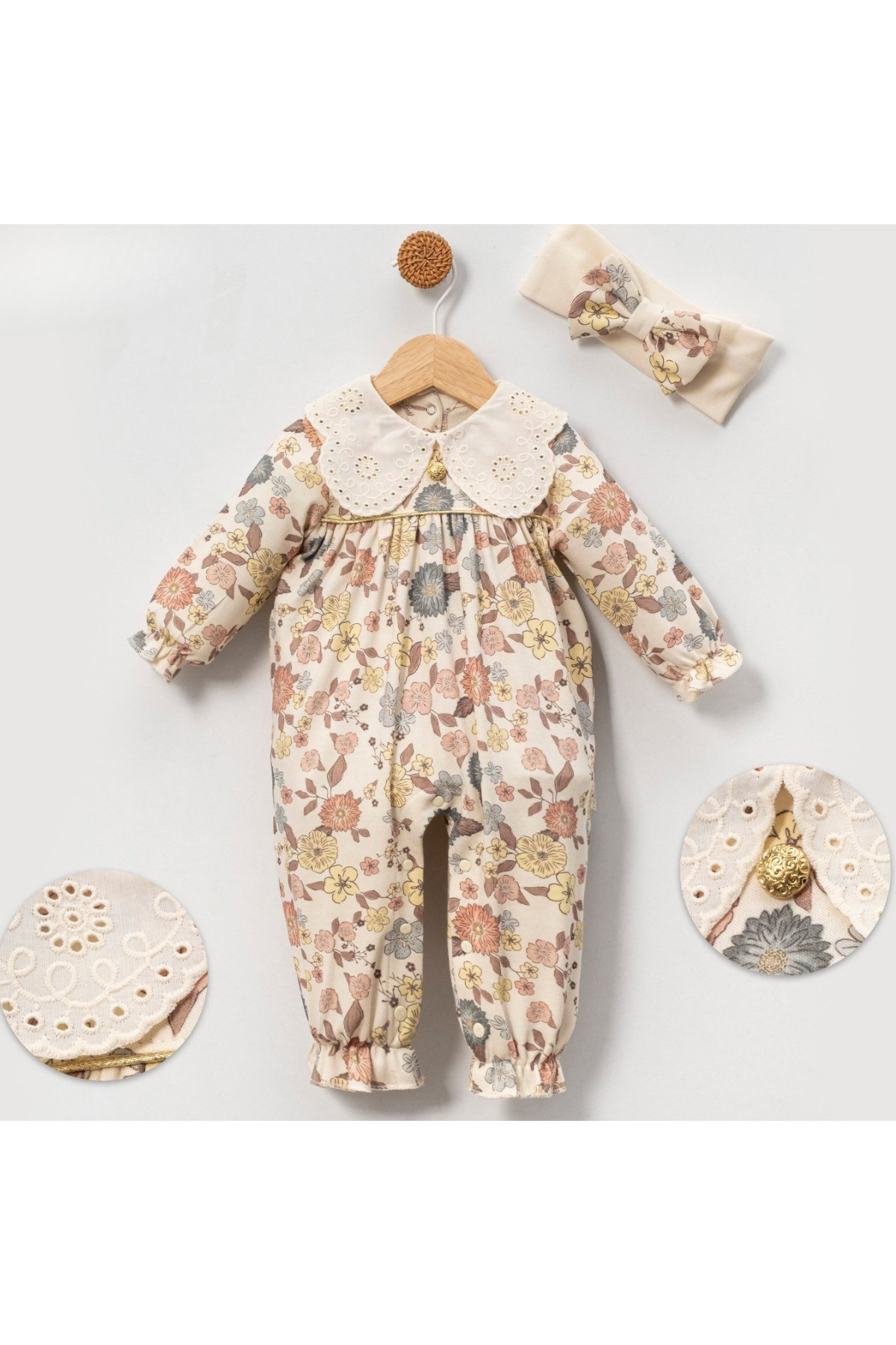 ميزات بذلة زر منقوشة الأزهار من minicayzen