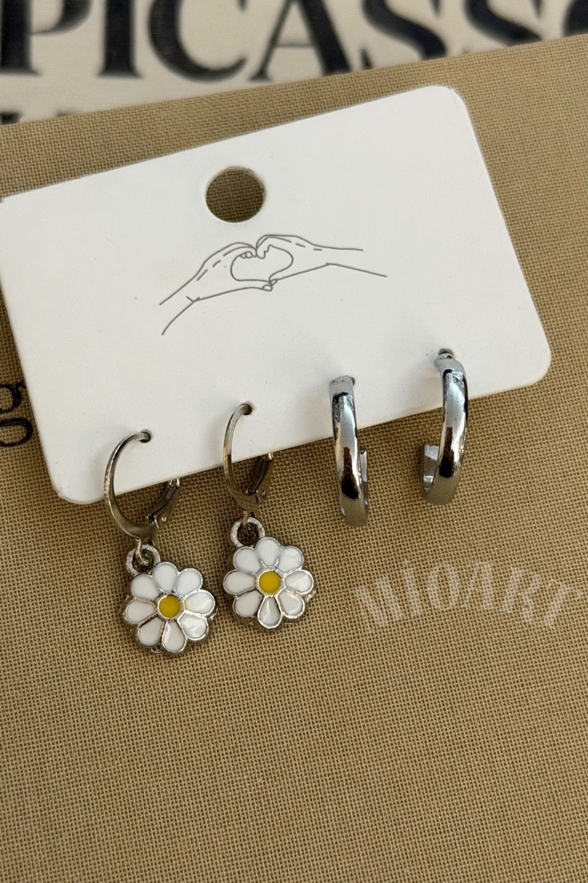ميزات مجموعة أقراط منقوشة على شكل زهرة الأقحوان من MioArt