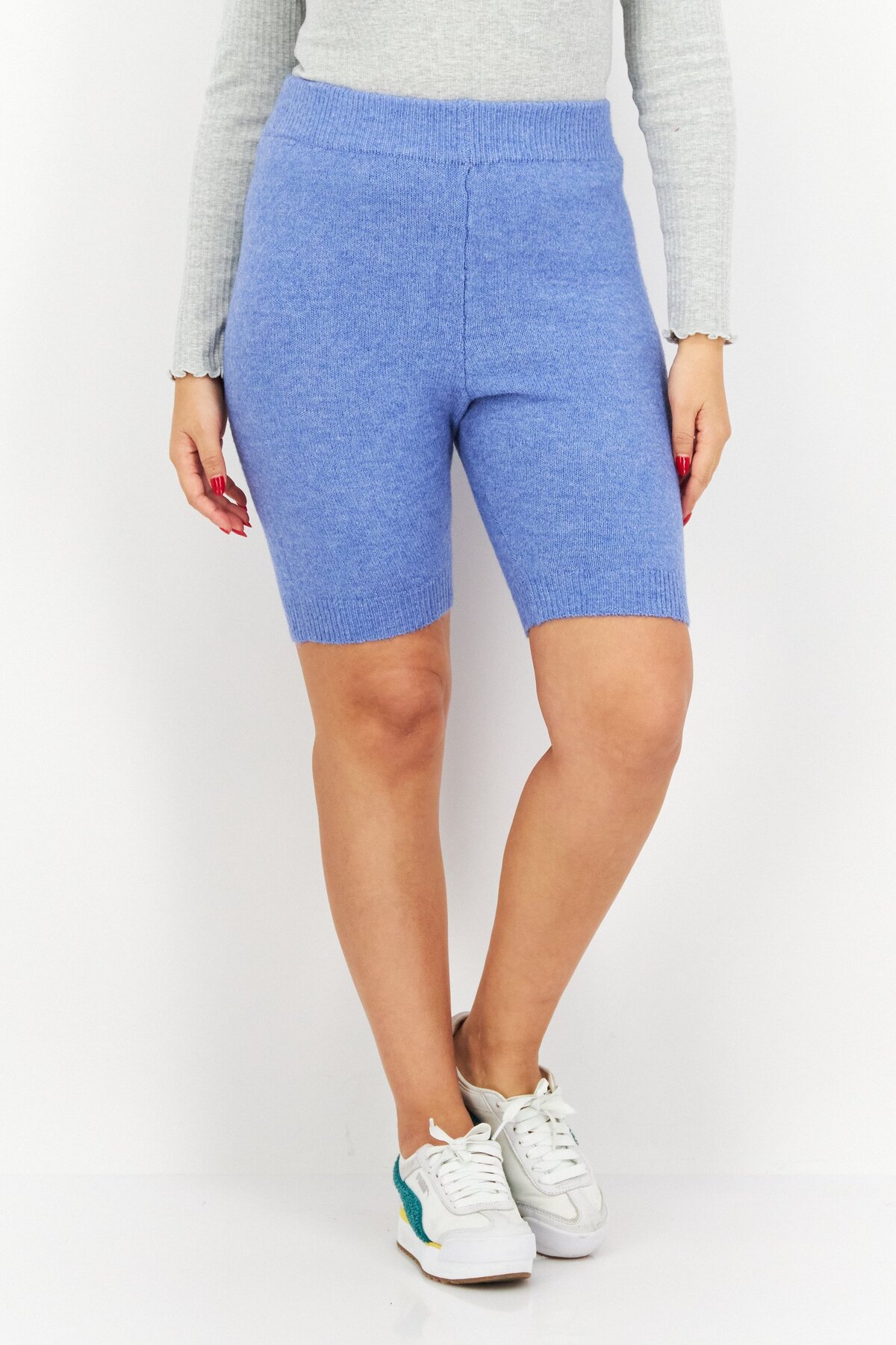 ميزات شورت نسائي محبوك أساسي، أزرق من Missguided