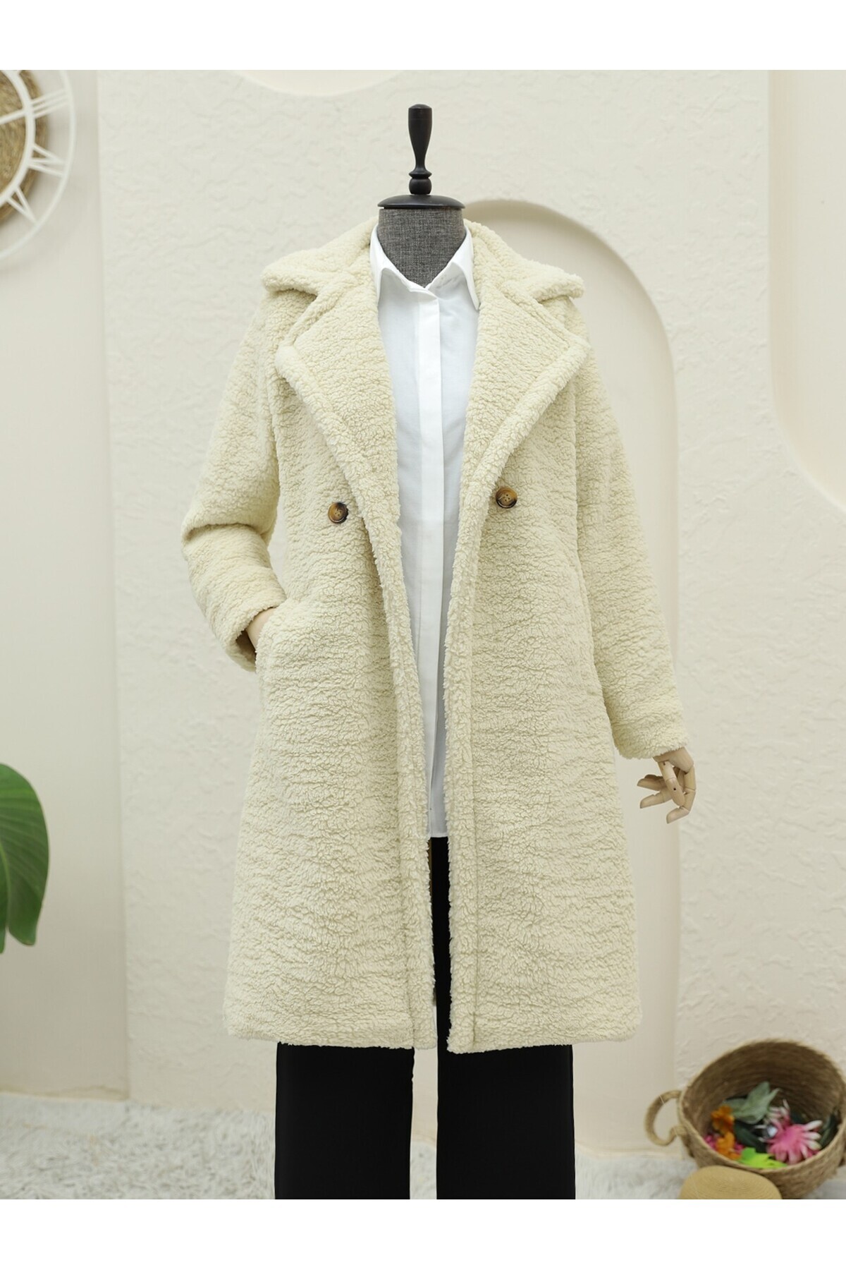 MissPul معطف قطيفة مبطن بأزرار مزدوجة وجيوب جانبية