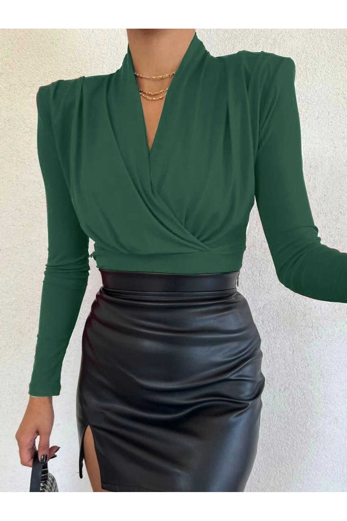ميزات بلوزة ساندي موديل مبطنة مزدوجة الصدر من MissRunin