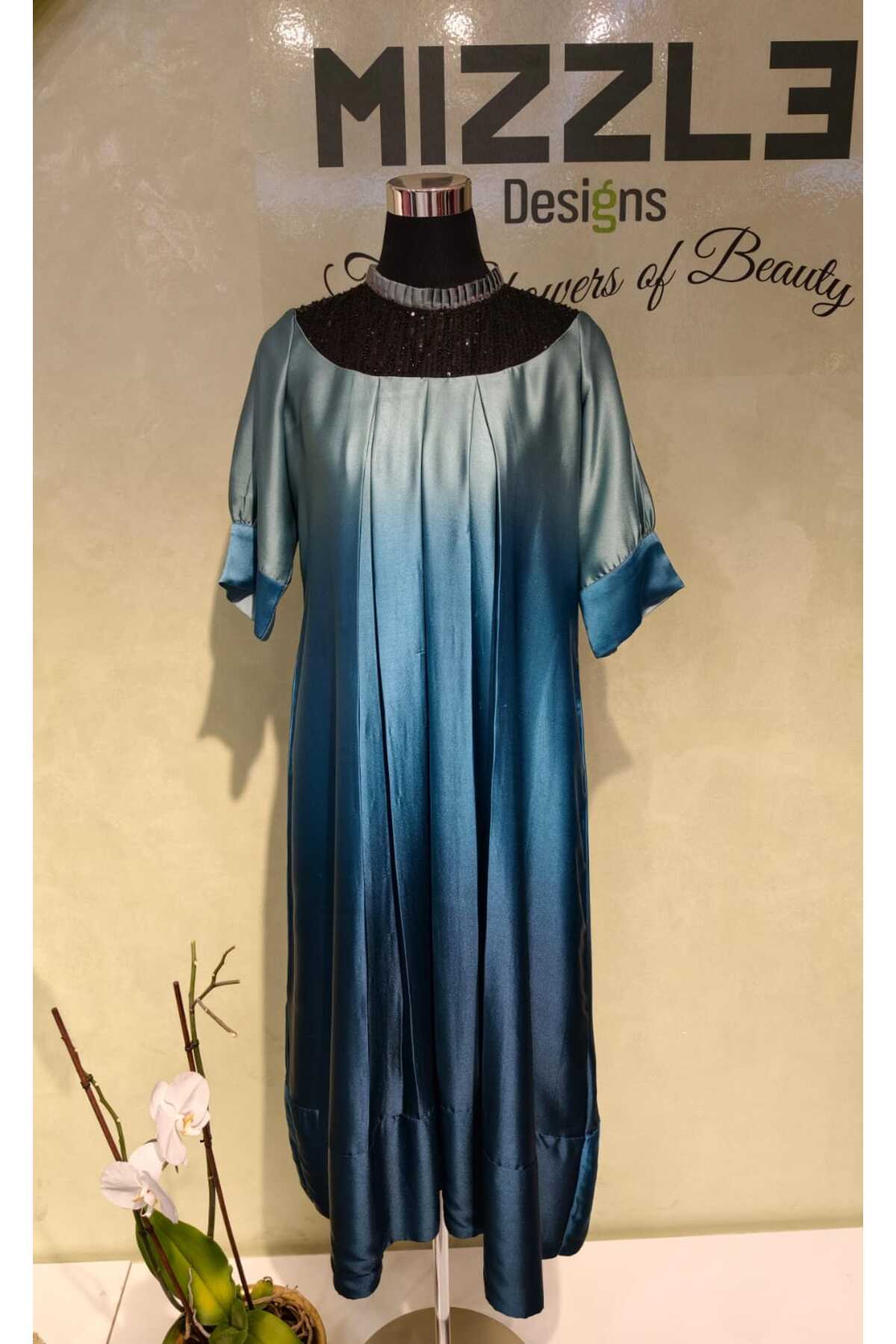 Soft Satin shaded net at neck with sequence work
