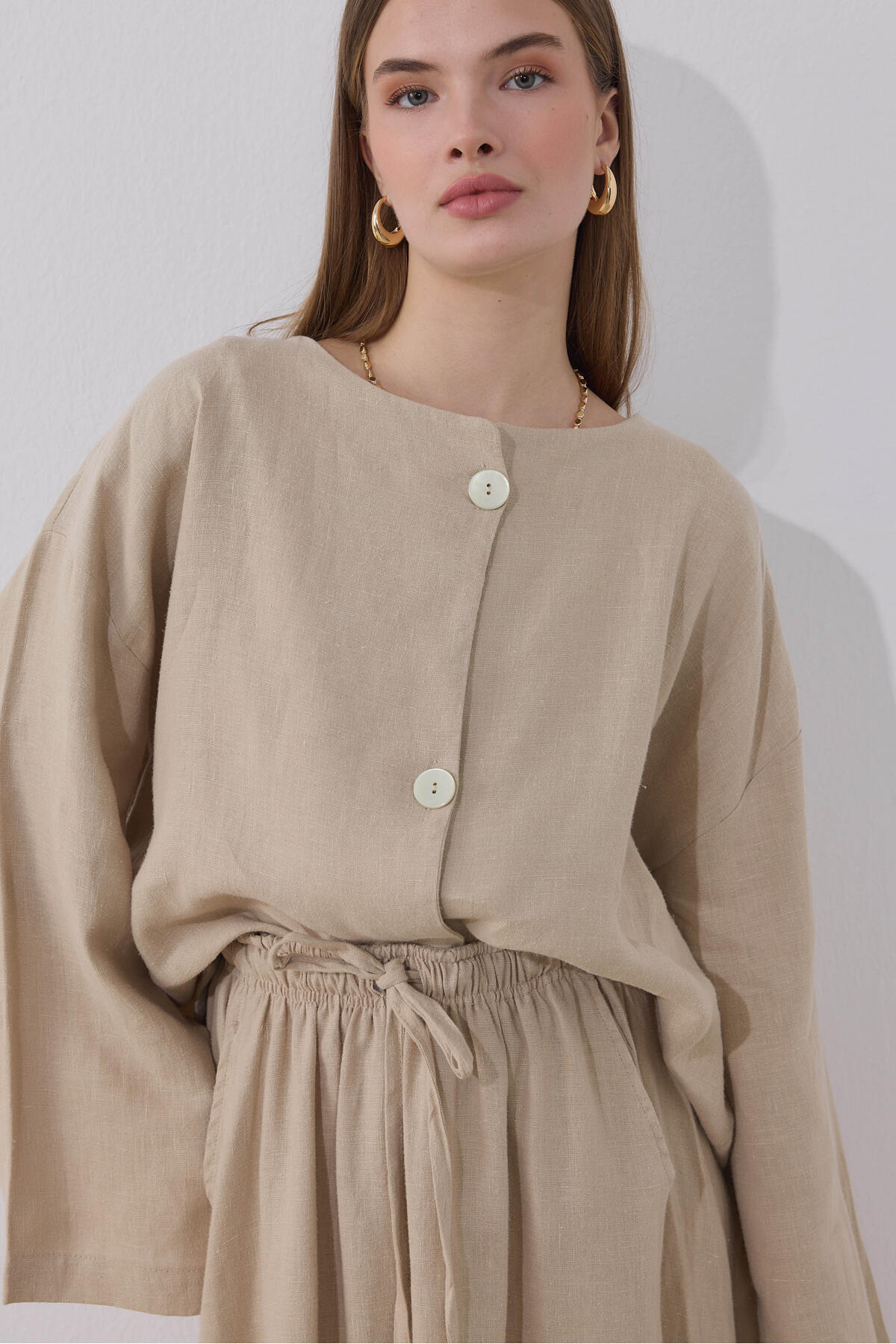 ميزات سترة بيج منى كتان من Moca