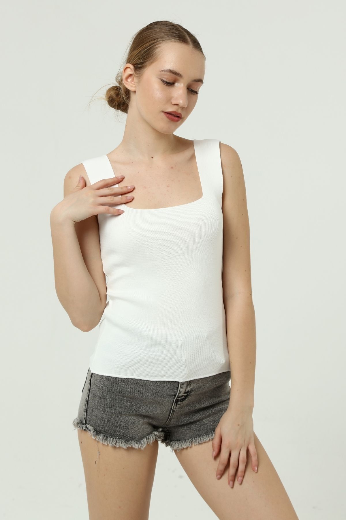 MODA BORSASI بلوزة ذات رقبة مربعة وأشرطة سميكة