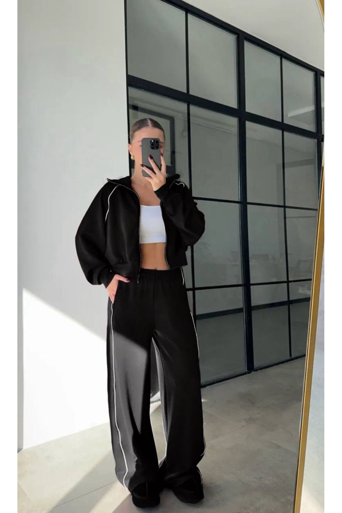 MODA CESE مجموعة ملابس من قماش المودال مكونة من حواف أسطوانية قطع بسحاب