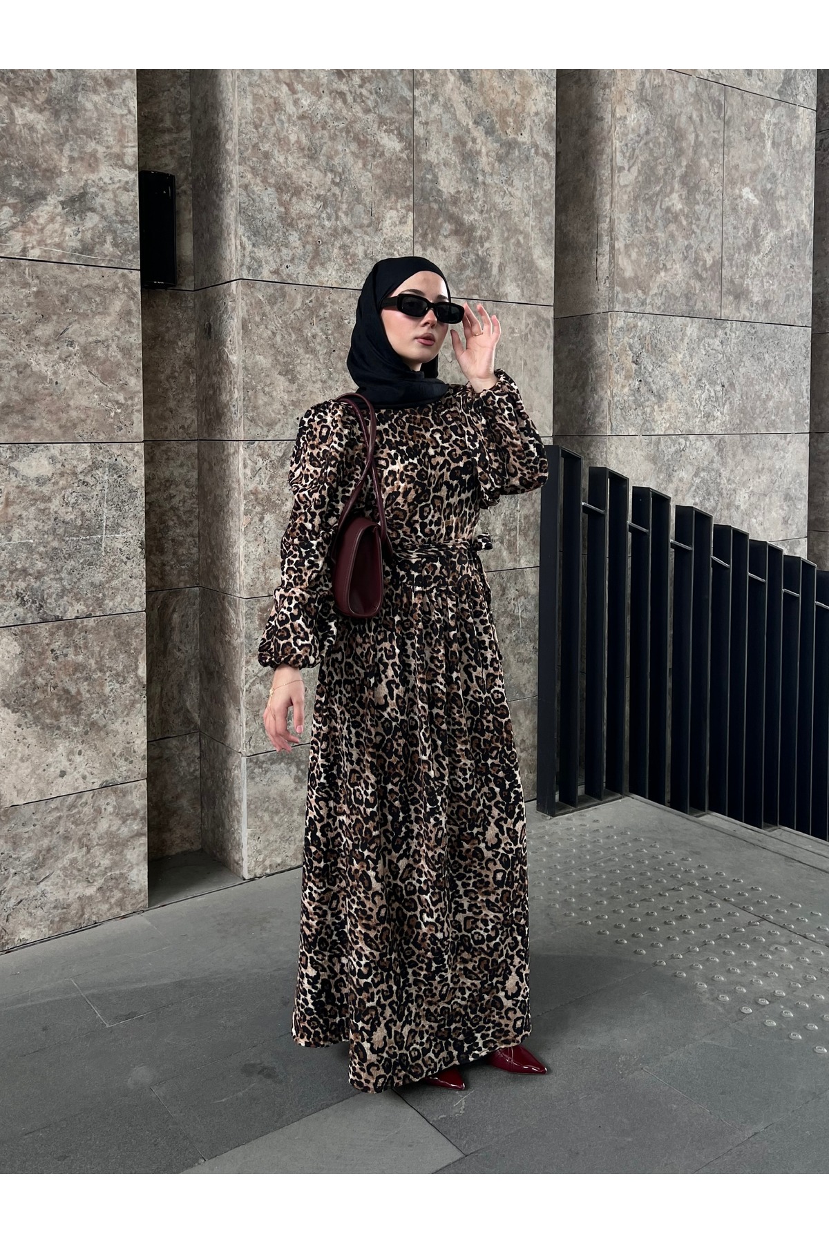 Moda Lippa فستان بحزام منقوش بنقشة الفهد