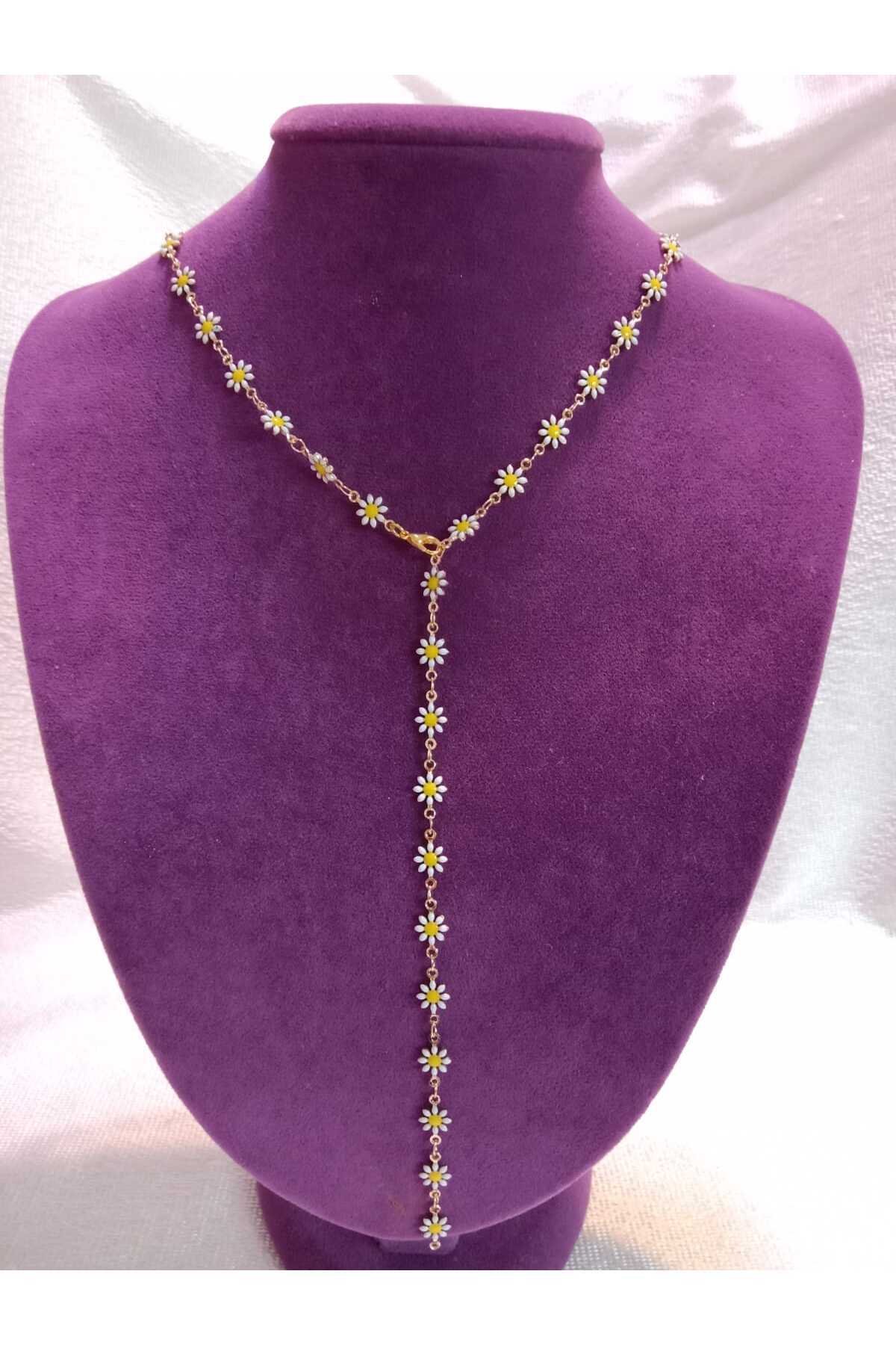 MODA MANANI قلادة على شكل Y منقوشة بالبابونج