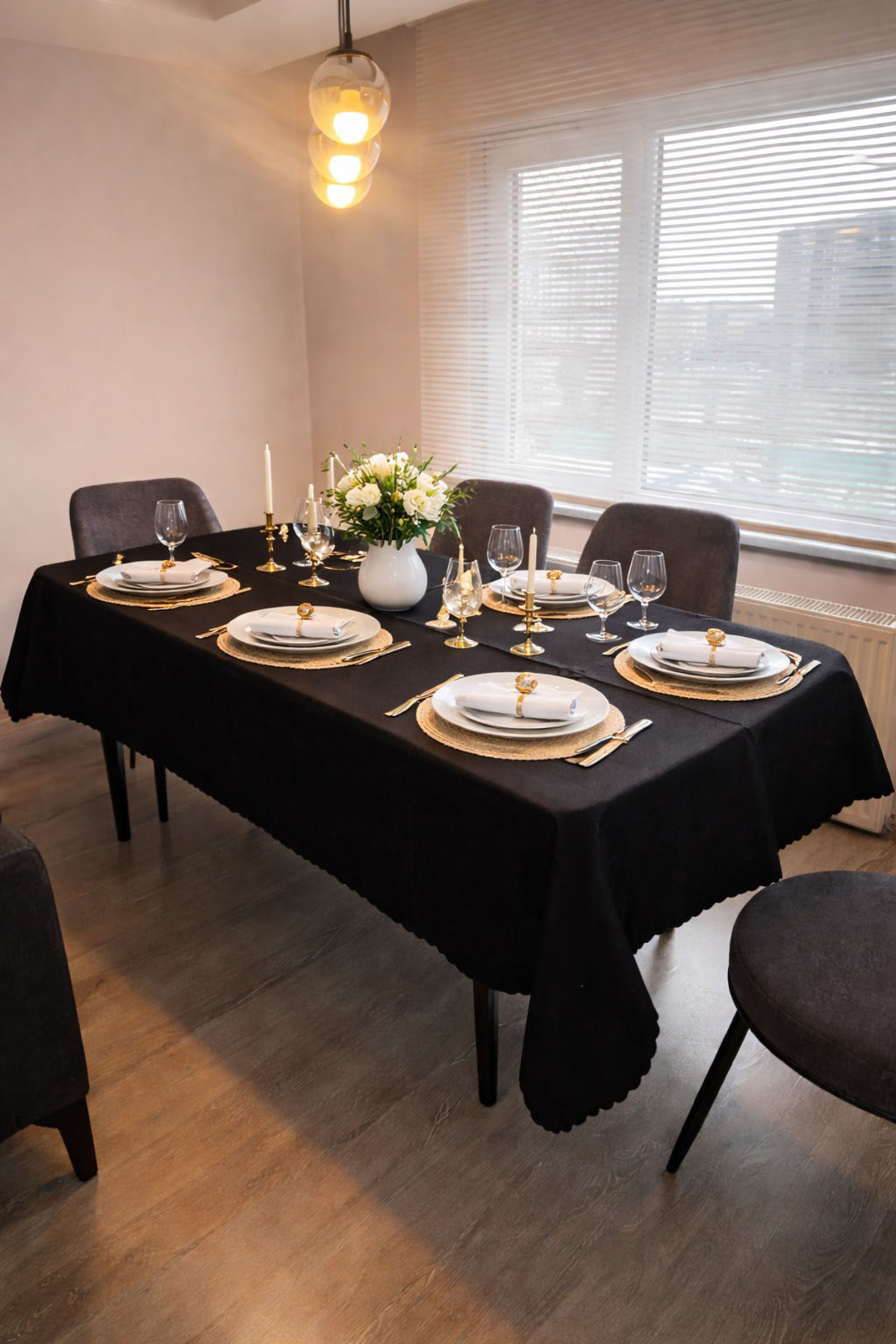 ميزات مفرش طاولة أسود مقاوم للبقع، متين، بسيط وأنيق لتزيين المائدة من MODA