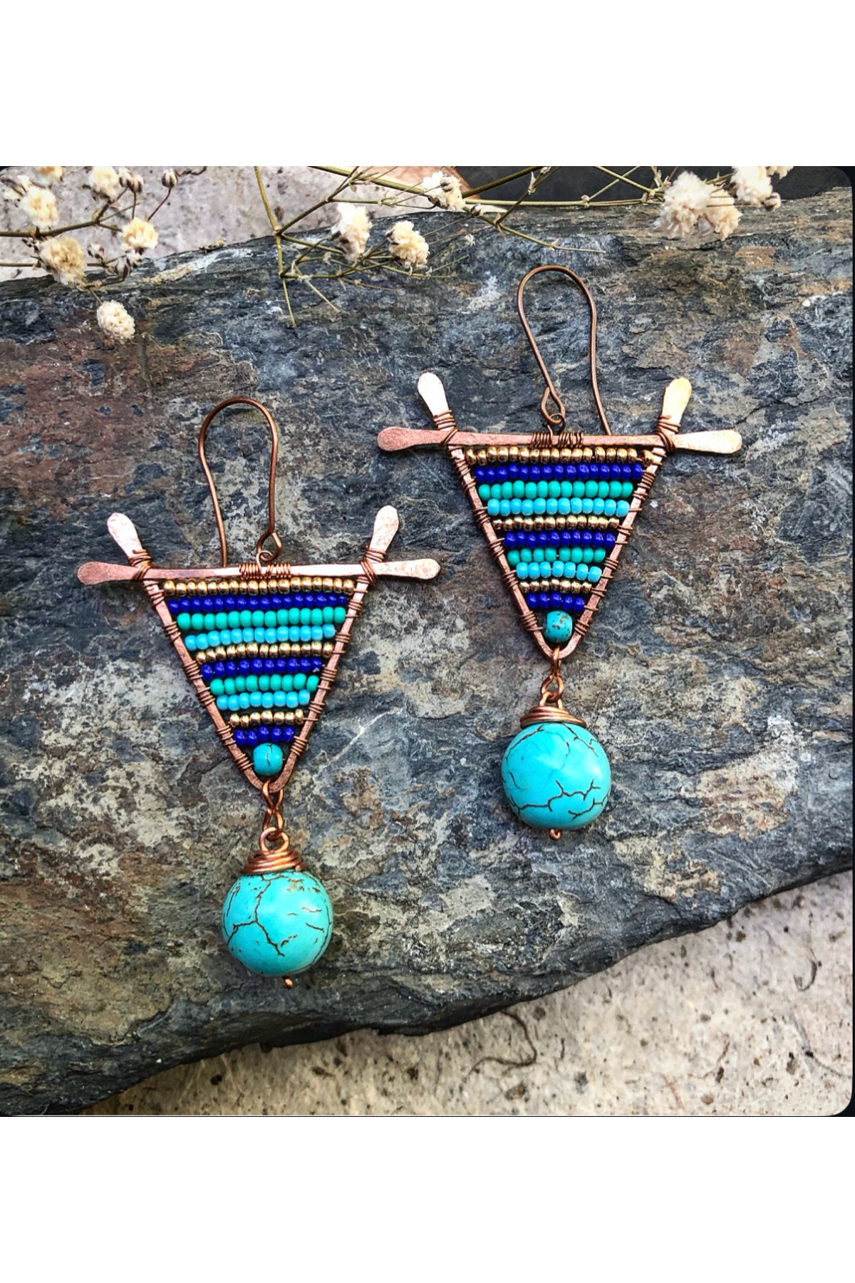 ميزات أقراط ملفوفة من سلك النحاس الفيروزي مصنوعة يدويًا من MODA