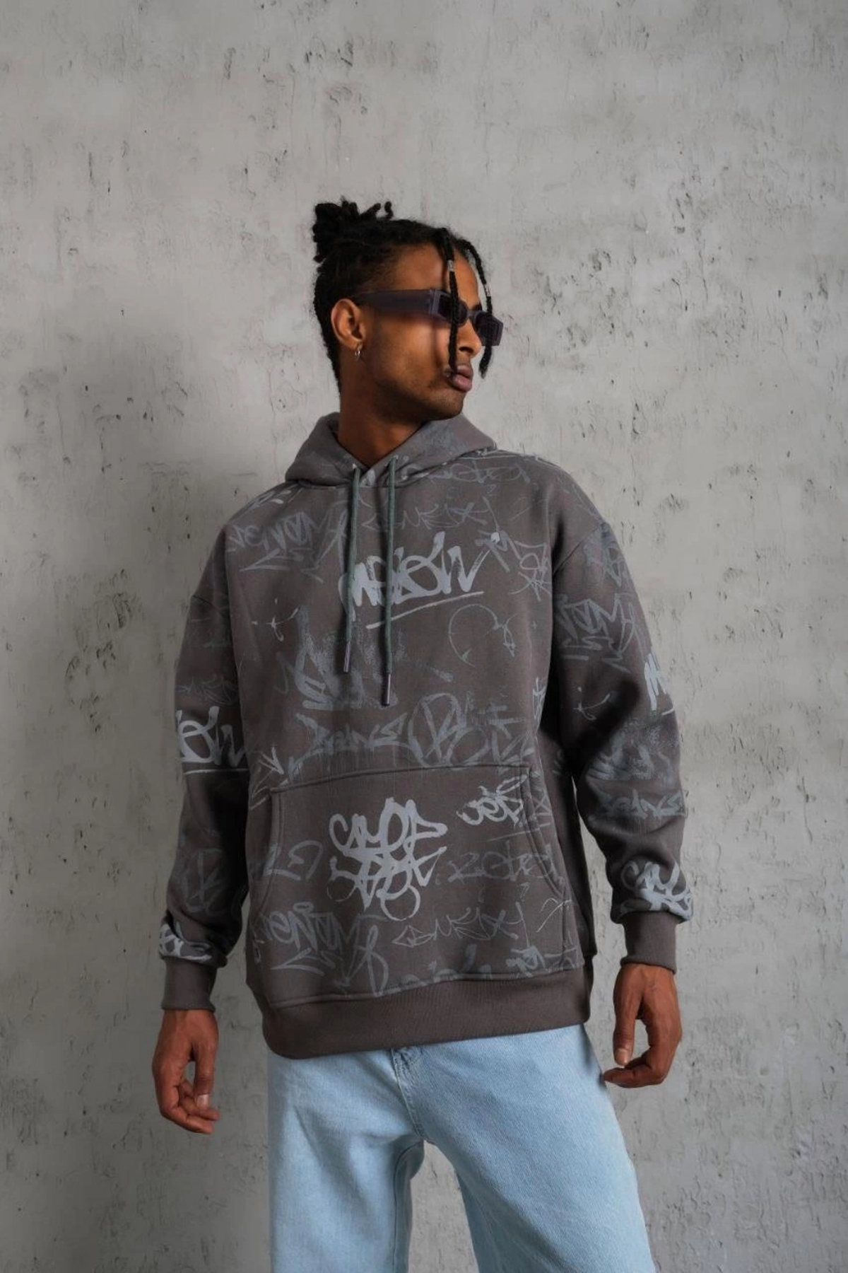 MODA مطبوع بغطاء رأس سويت ريبانال - رمادي