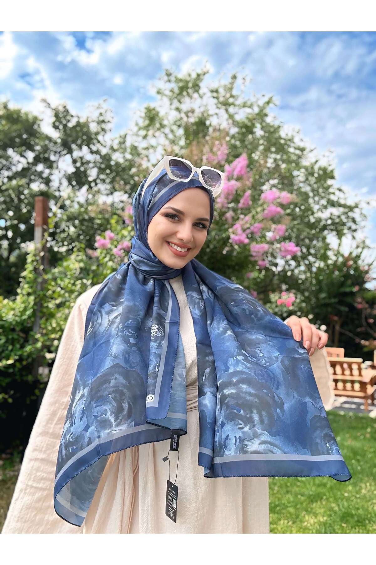ميزات شال ناعم بنمط روسا - أزرق بارد من MODA