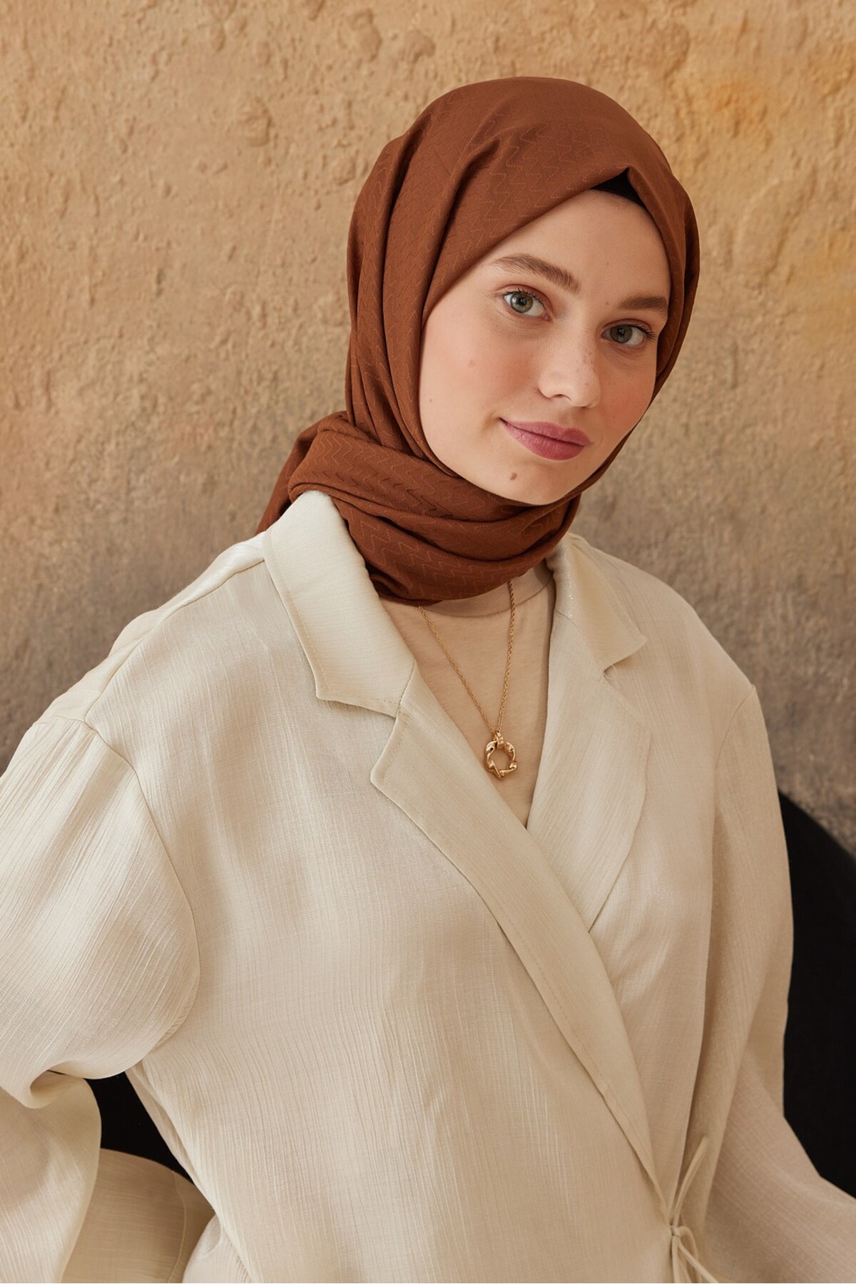 ميزات شال بنمط متعرج من سلسلة جاكار ناعمة من Modakaşmir