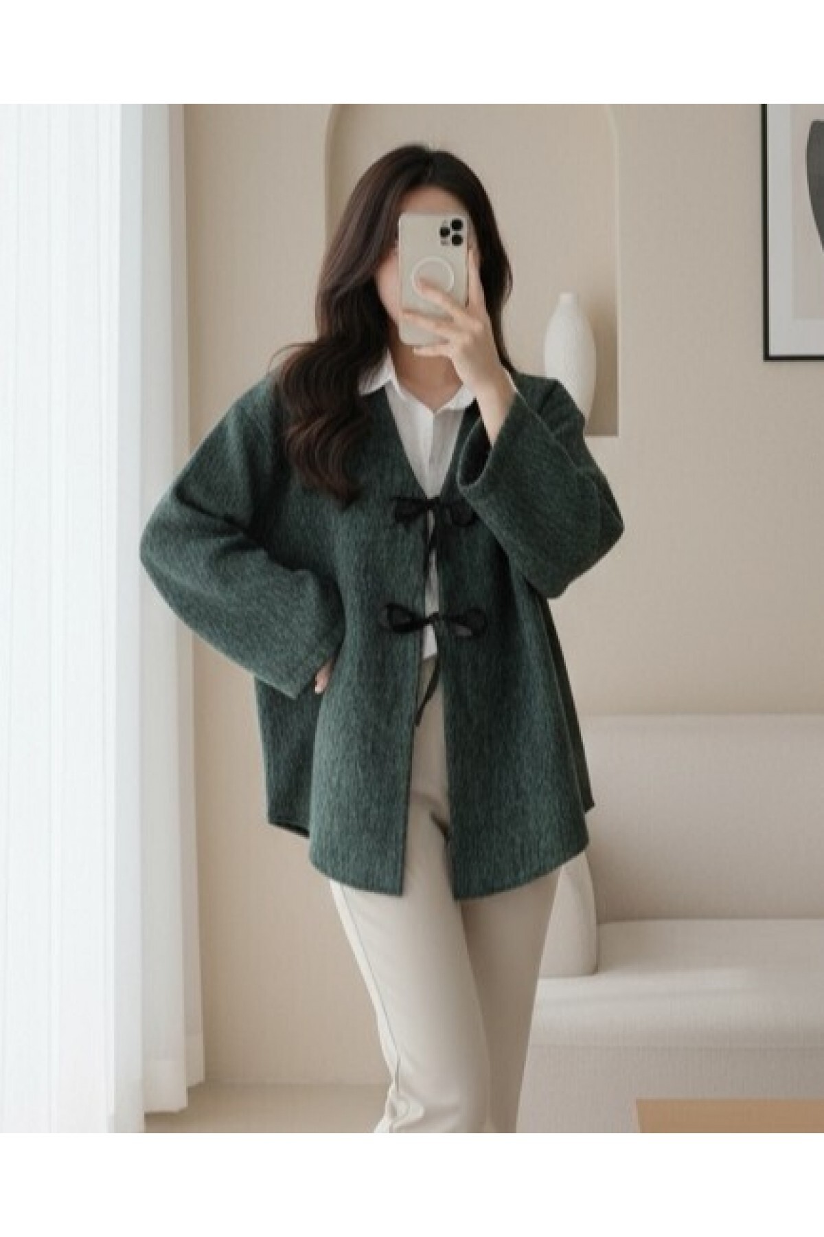 ميزات سترة مربوطة من الأمام - زمرد من Modamorfo