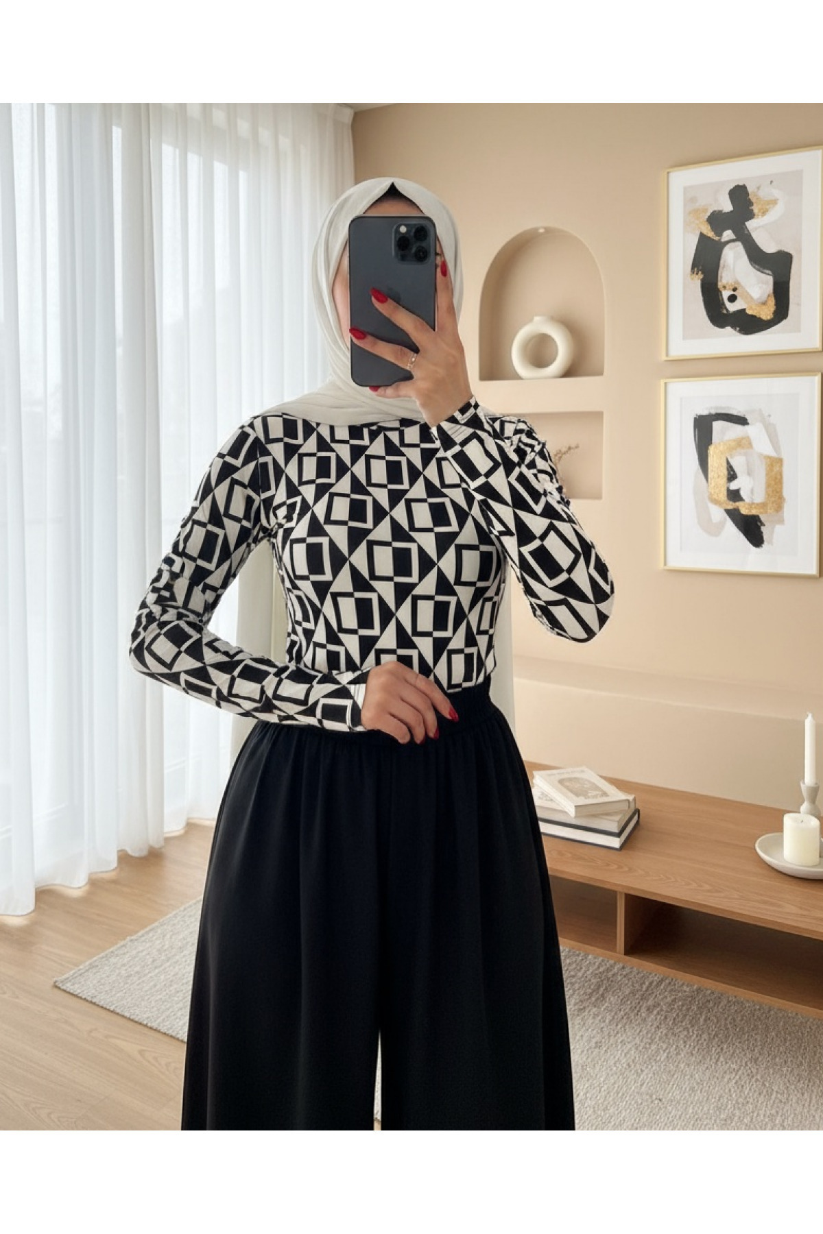 Modamorfo بلوزة منقوشة بشكل عام بنصف رقبة