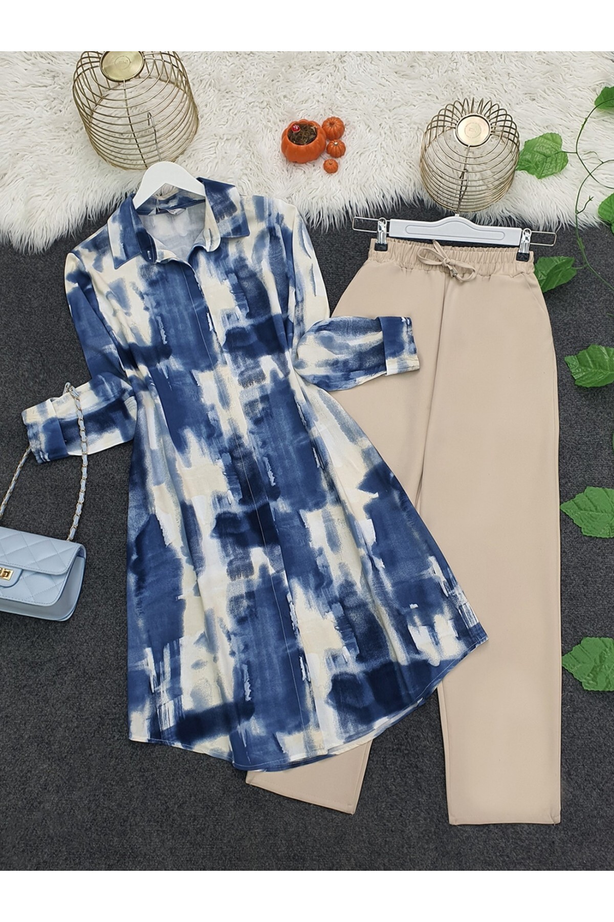 ميزات تونيك فيسكوز منقوش بأزرار باللون الأزرق الجليدي من Modamorfo