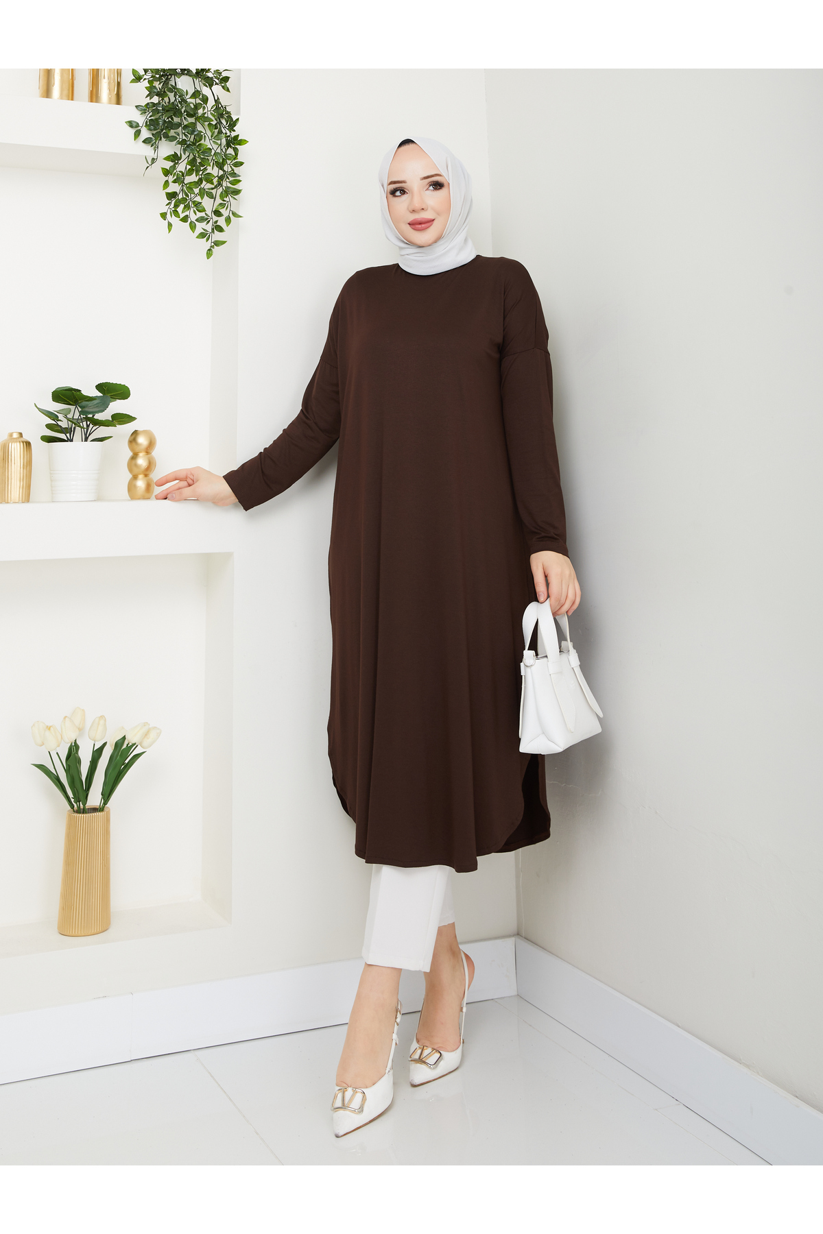 MODAMÜNASİP تونيك رائع من القطن الممشط البيضاوي