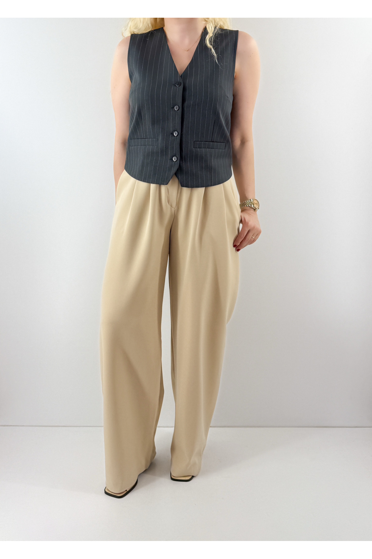 ميزات سترة مخططة باللون الأزرق الداكن من Modaonna