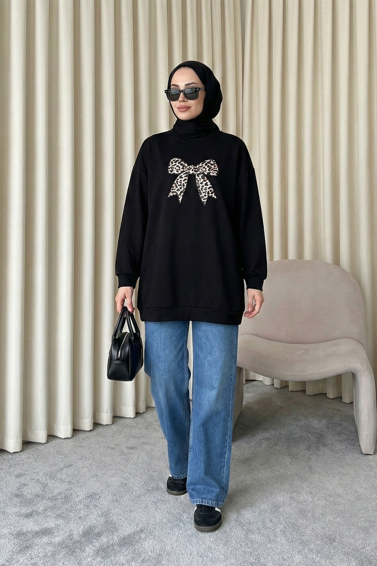 ميزات تونيك بطبعة فيونكة - أسود من MODAQU