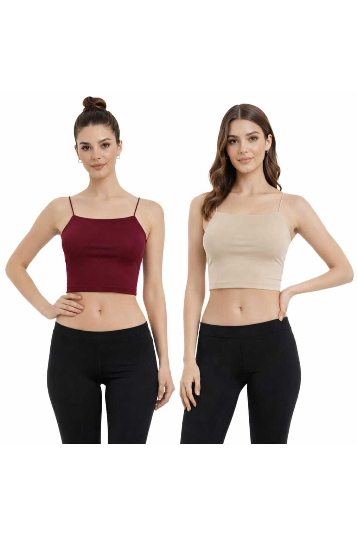 MODARENGİN طقم من قطعتين: توب قصير أساسي بحمالات رفيعة (بويستر)