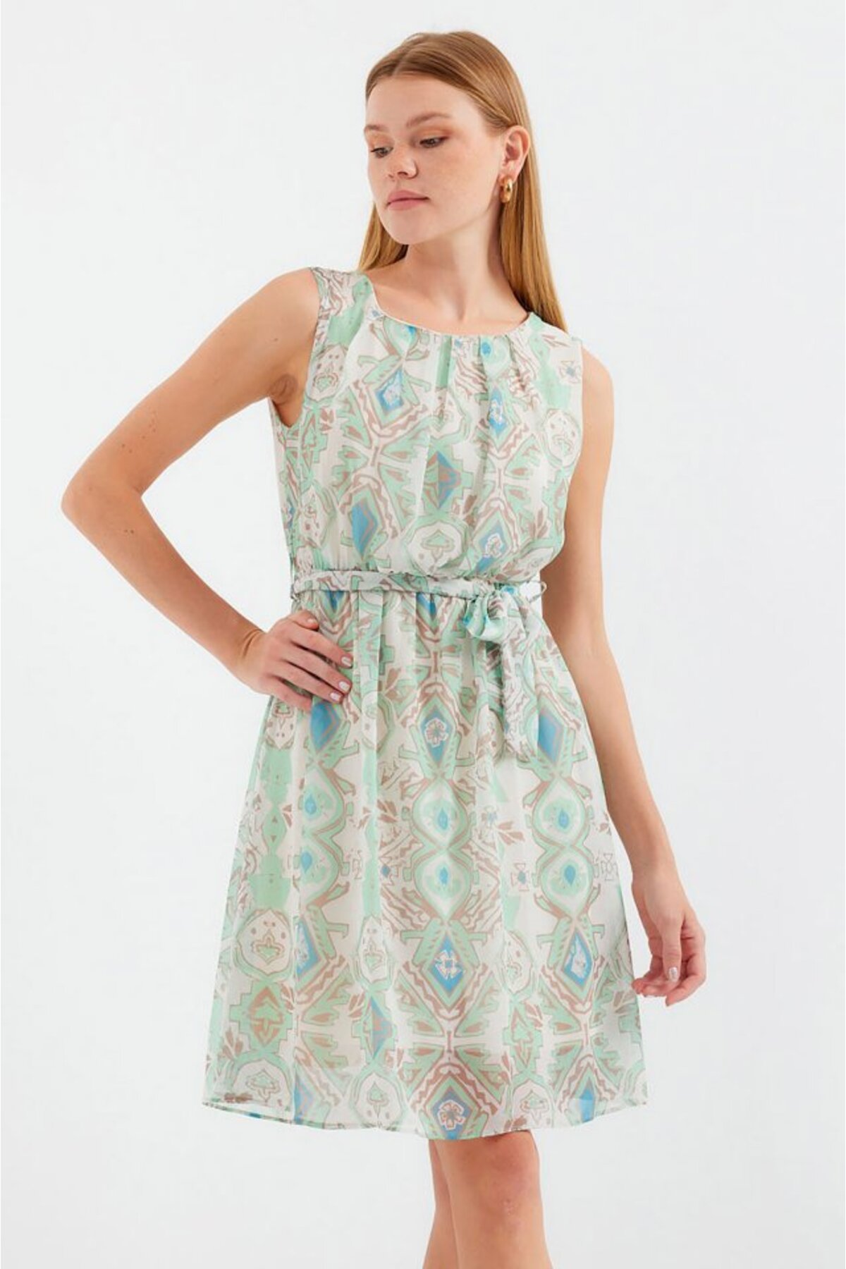 ميزات 2501 فستان شيفون بدون أكمام منقوش - نعناعي من modaserdem