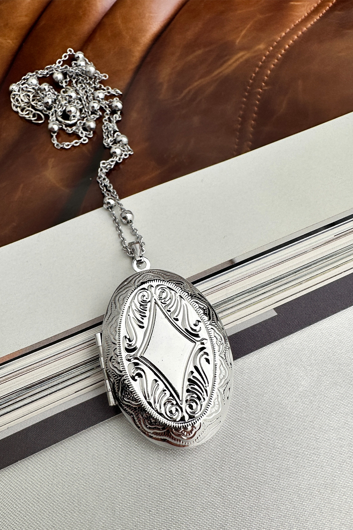 ميزات قلادة بيضاوية منقوشة بغطاء قابل للفتح (68 سم) من Modex