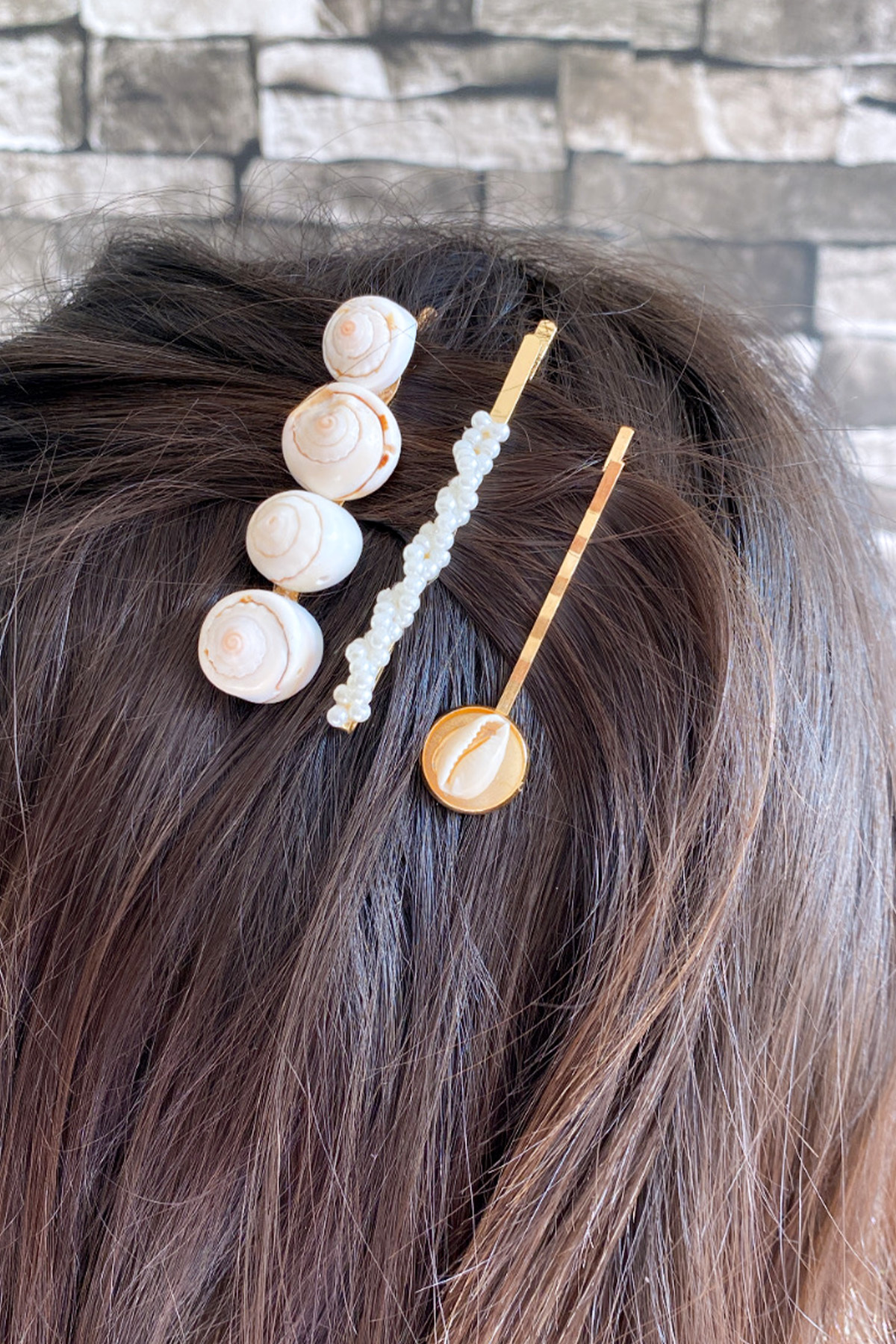 Modex مشبك ثلاثي مرصع باللؤلؤ على شكل صدف