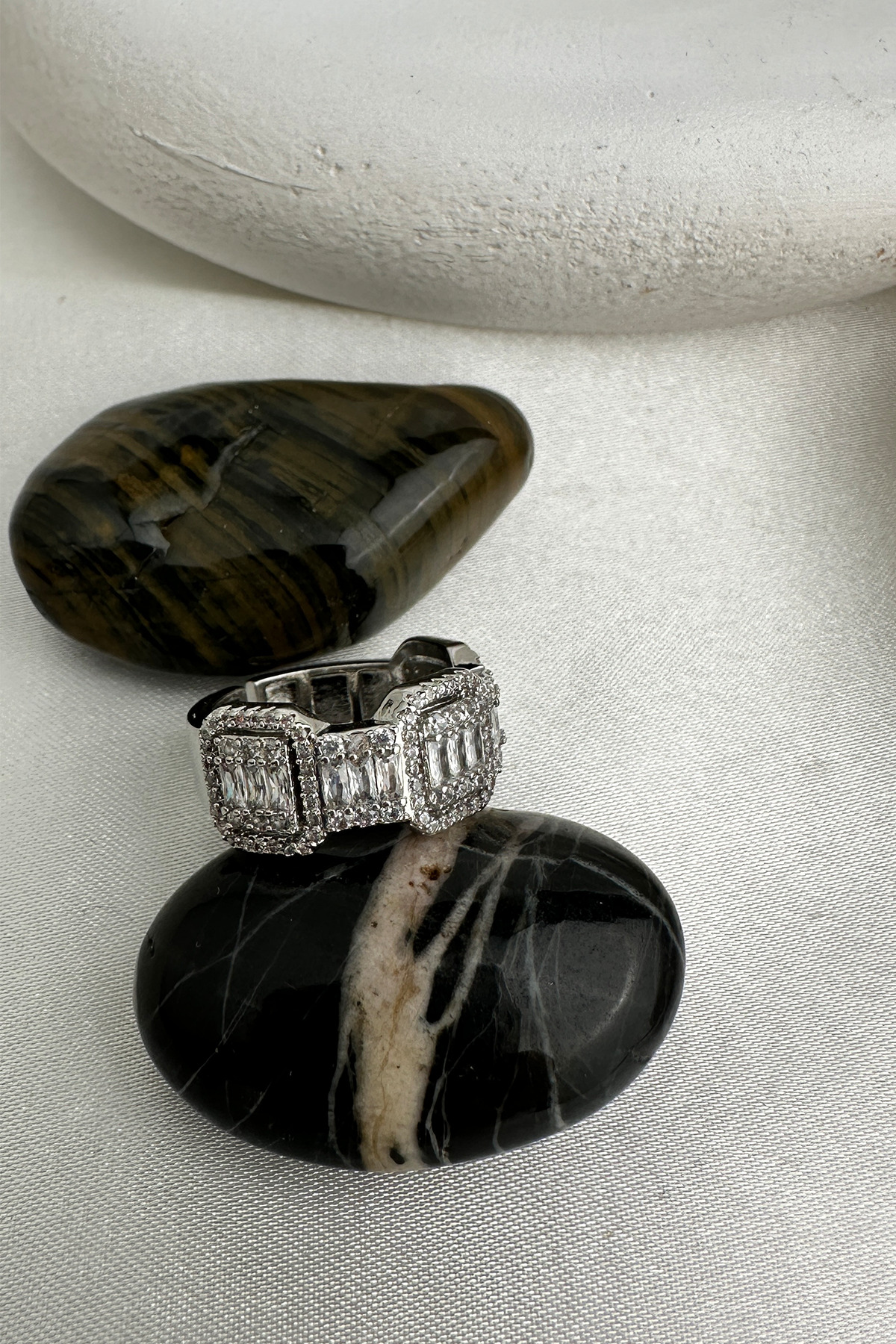 ميزات خاتم قابل للتعديل من حجر الزركون الصلب الصلب مع تفاصيل مربعة من Modex