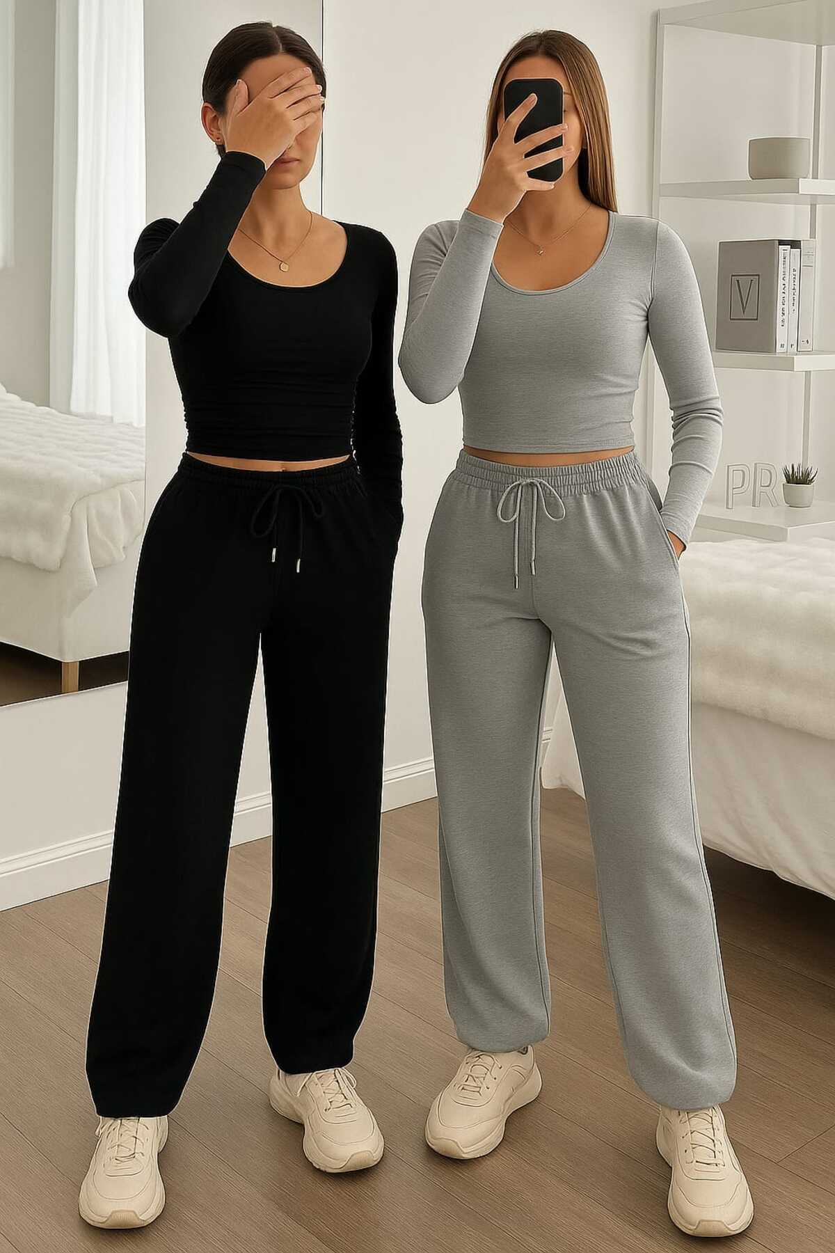 ميزات بنطلون رياضي شتوي مزدوج باللونين الأسود والرمادي من modlux