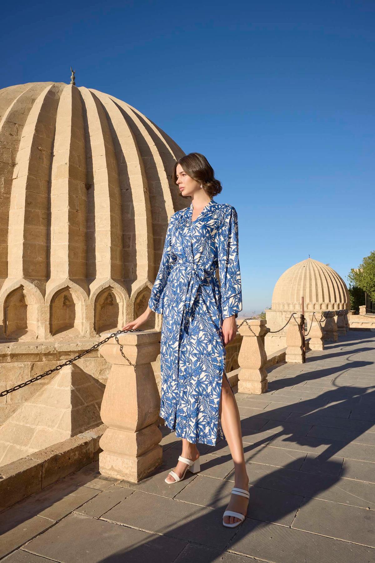 MONAMİSE رداء من الساتان بفتحة منقوشة بأوراق الشجر