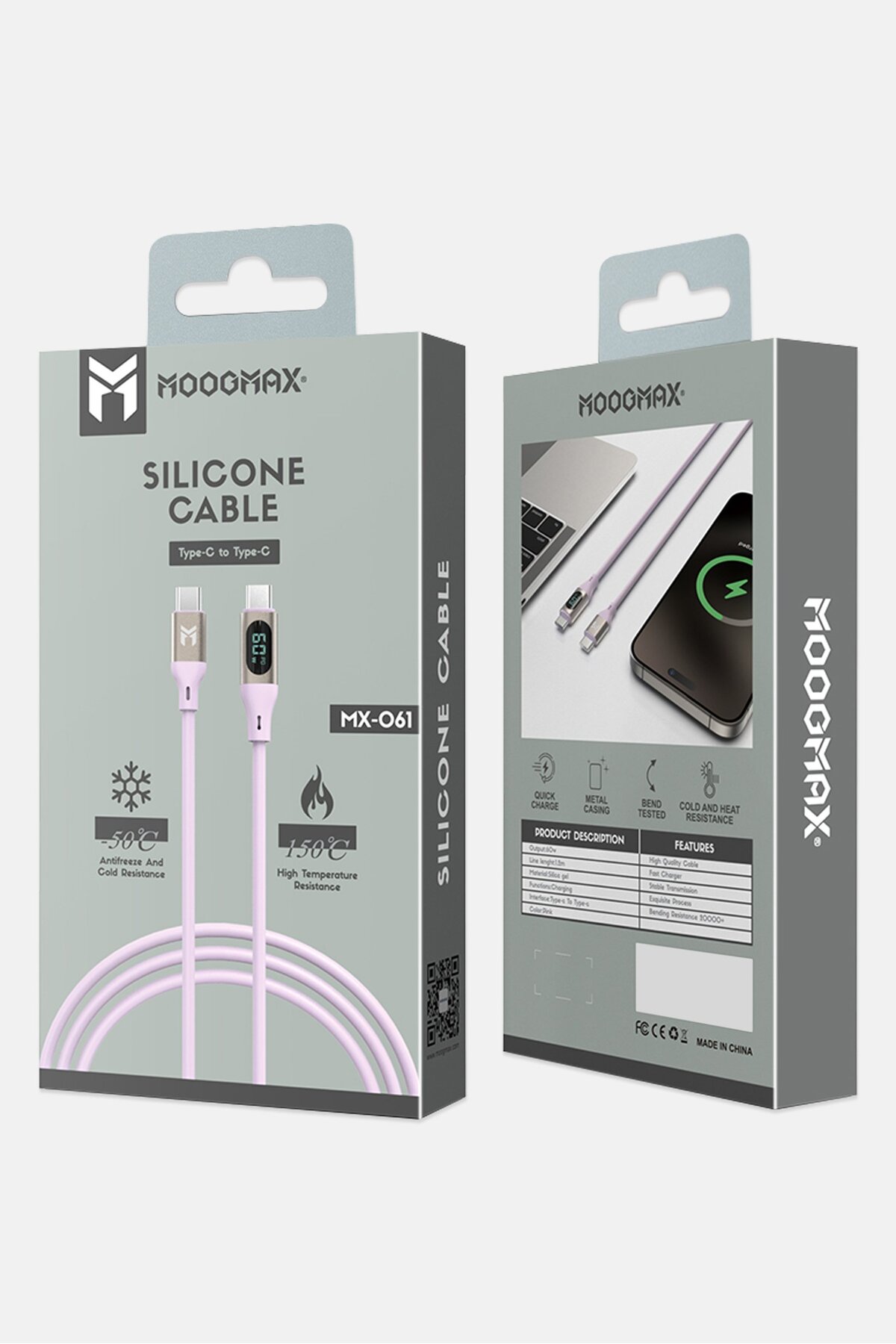 ميزات كابل مطاطي من النوع C بطول متر واحد، MX061، وردي من MOOGMAX