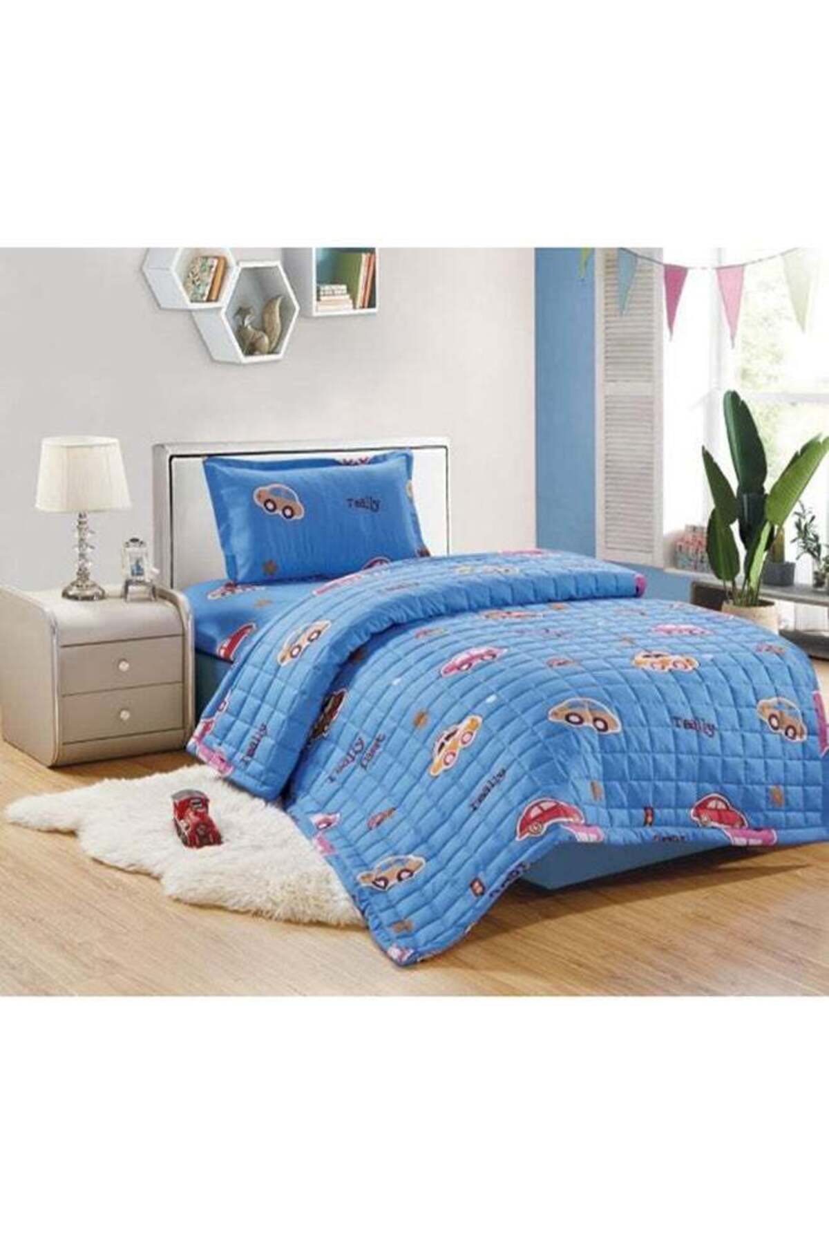 Moon طقم لحاف مضغوط، مقاس مفرد، 3 قطع، من الألياف الدقيقة، أزرق