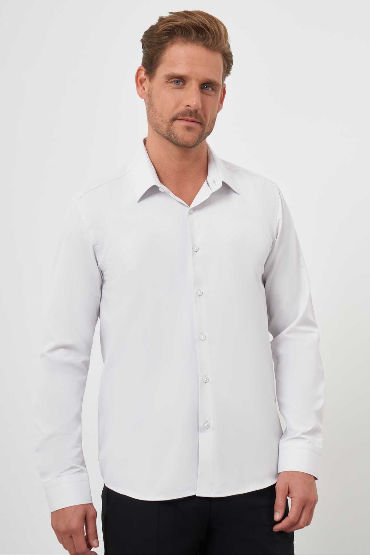 ميزات قميص رجالي ذو تصميم سادة من Stone Basic ذو ياقة صلبة وقصة ضيقة من Morven