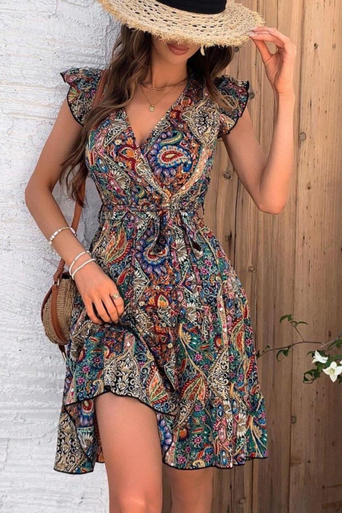 ميزات فستان سوليد بطبعة جيرسيه بياقة مزدوجة - منقوش من Mossta