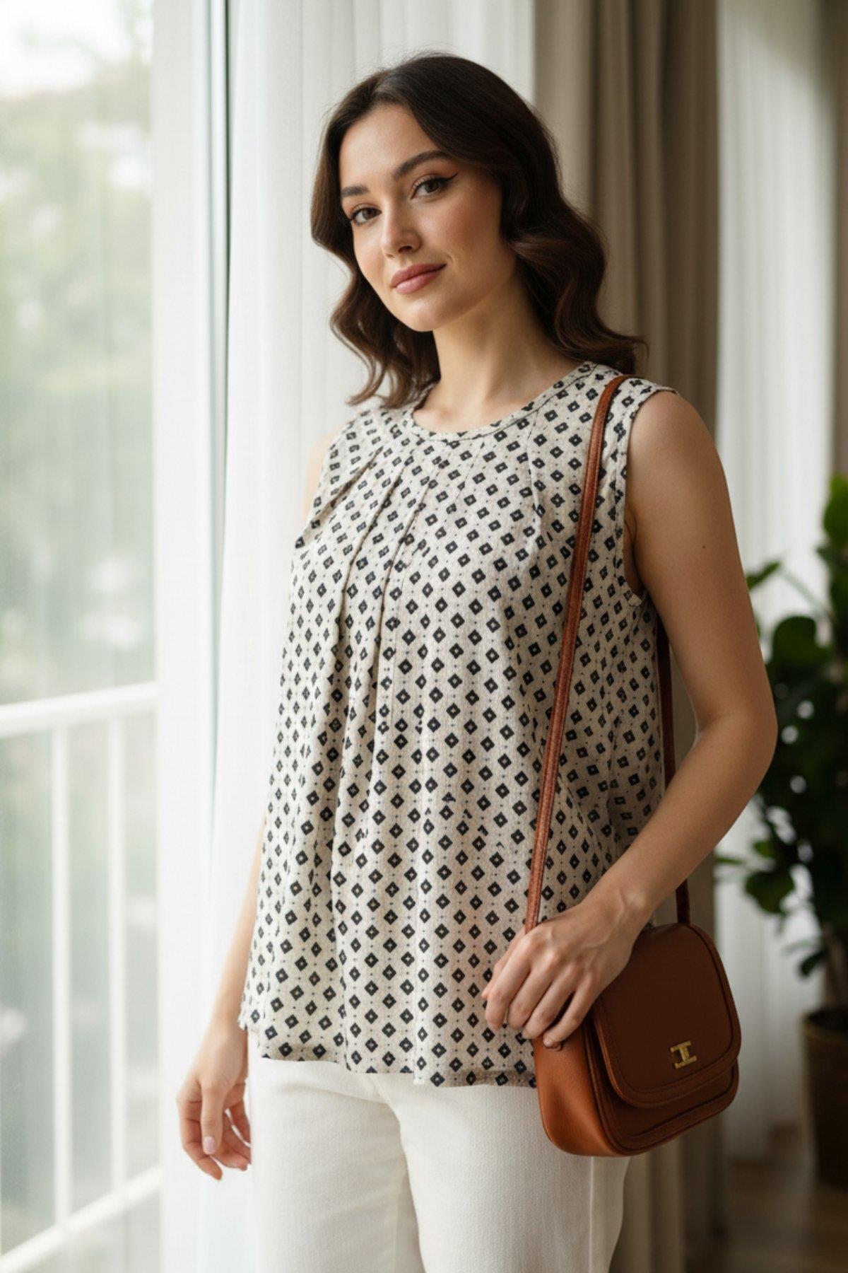 Mossta بلوزة جيرسيه منقوشة برقبة دائرية - بيج