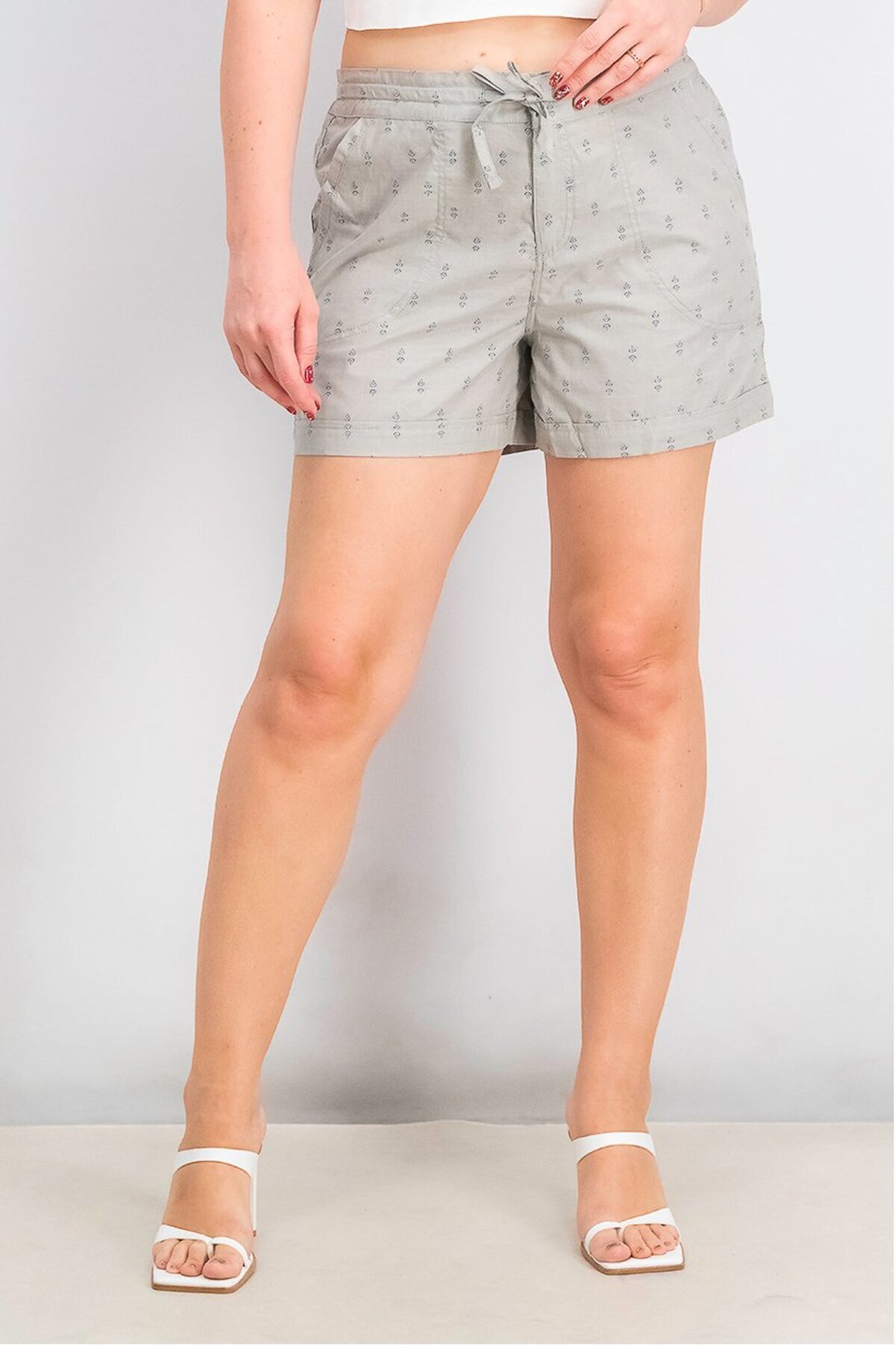 ميزات شورت نسائي أساسي مطبوع برباط، زعتر من Mountain And Isles